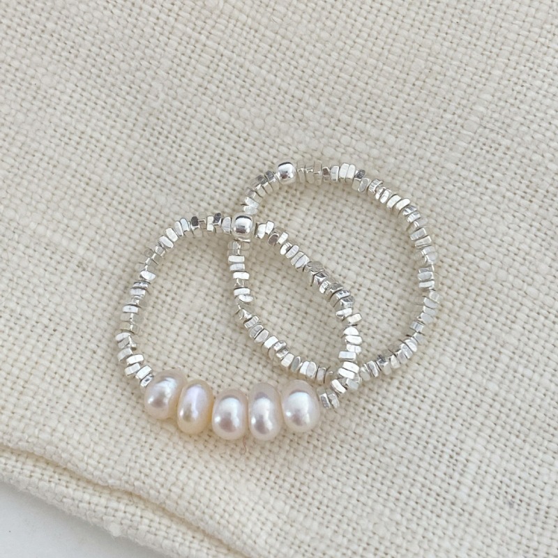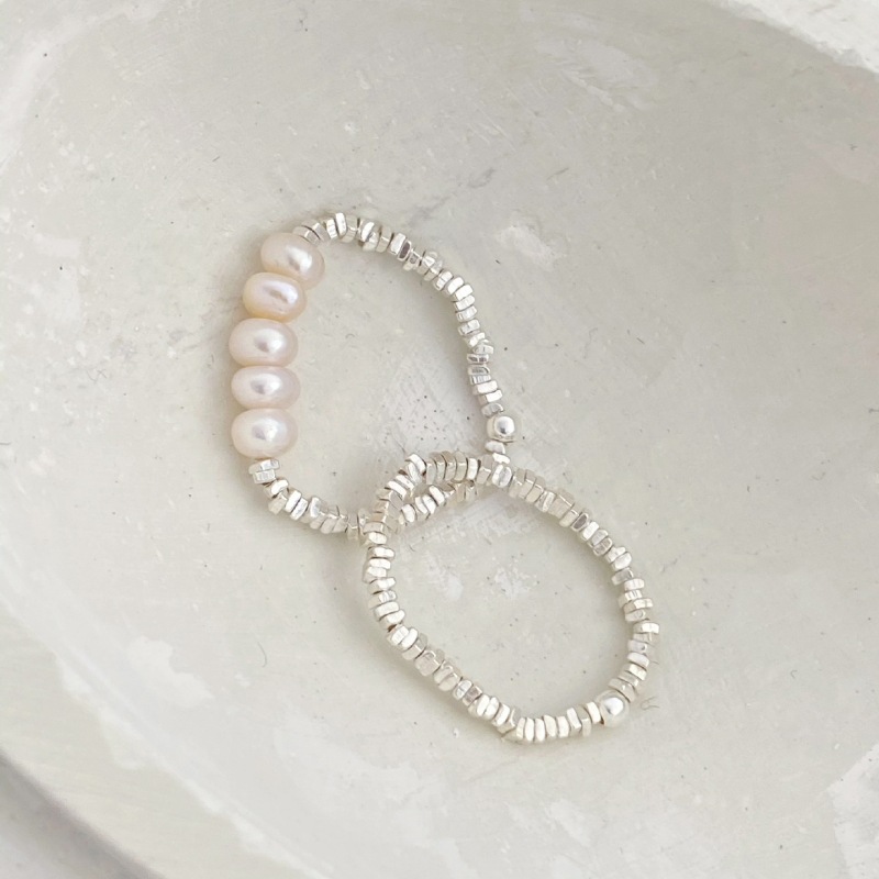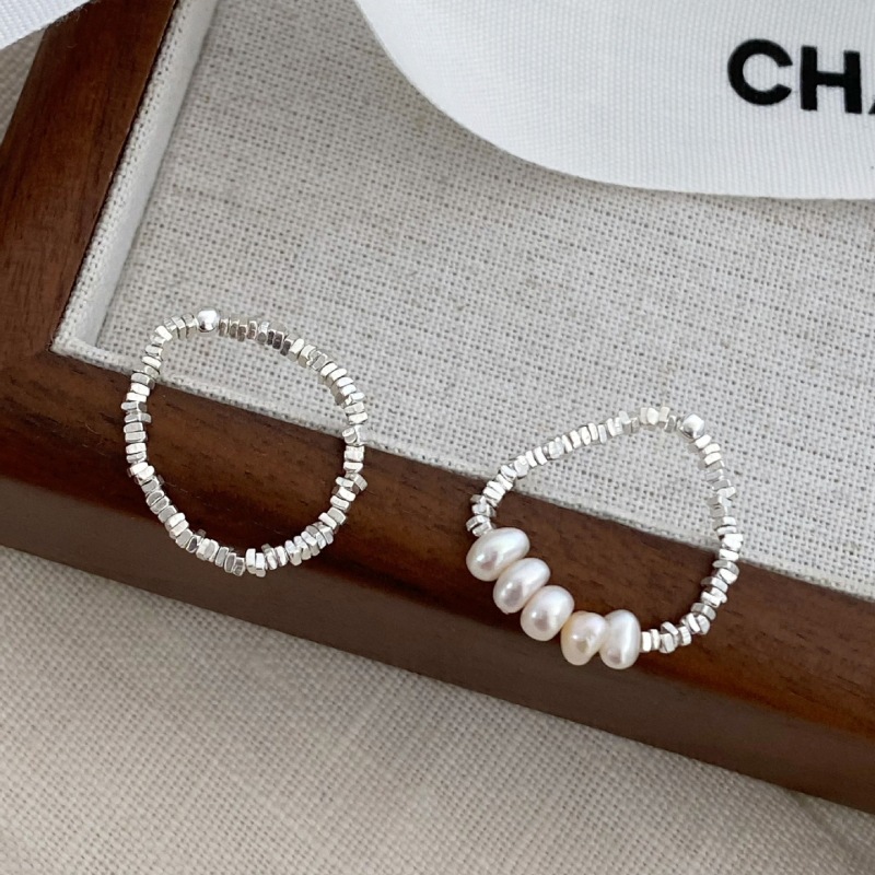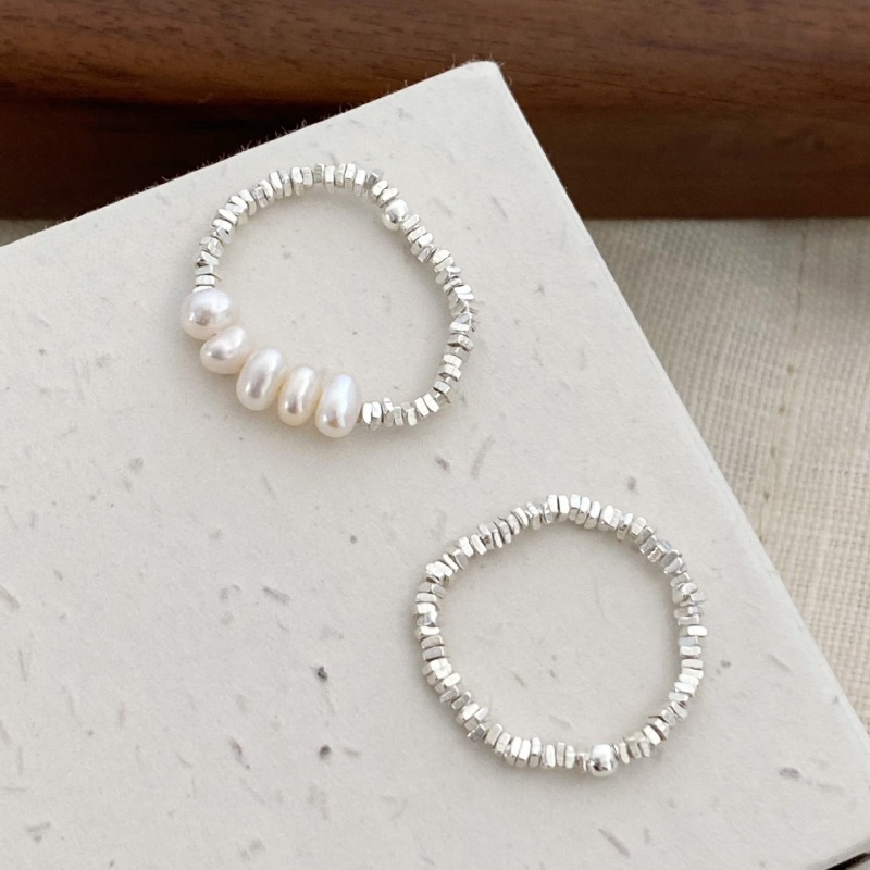 甜酷碎银珍珠戒指女网红几何不规则指环ins小众食指戒