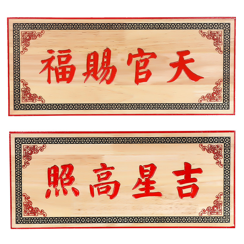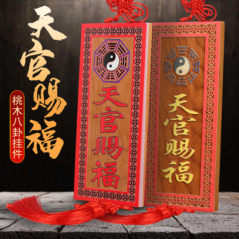 桃木天官赐福门贴牌匾门对门挂件吉星高照八卦镜凸镜家用招财摆件