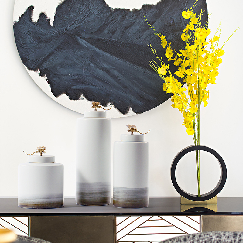 新中式陶瓷罐桌面摆设软装饰品样板房客厅玄关书柜隔断柜工艺摆件