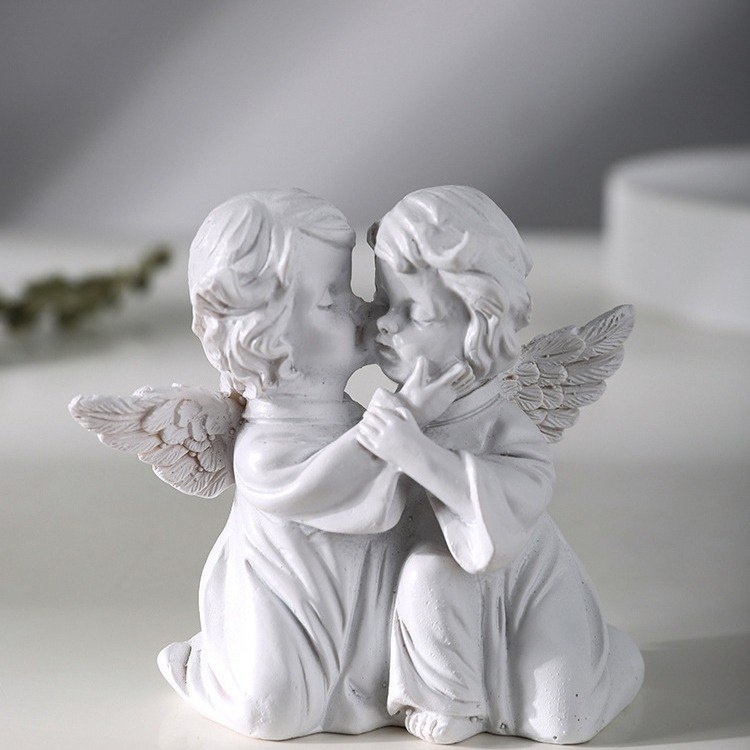 北欧复古白色少女天使装饰礼物石膏雕像人物桌面摆件情侣美式玩偶