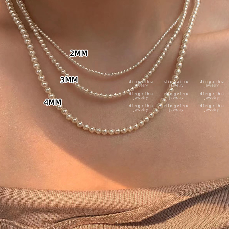 2MM迷你小粒正圆S家珍珠项链女正品强光串珠颈链毛衣链2023新款