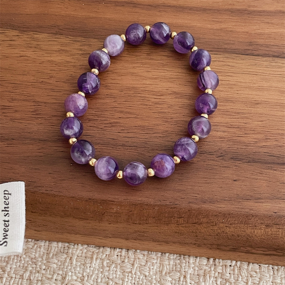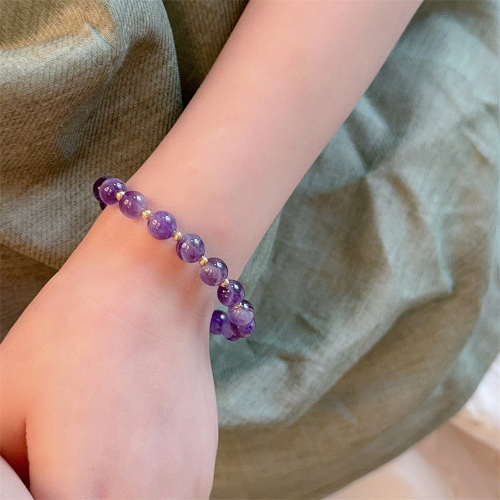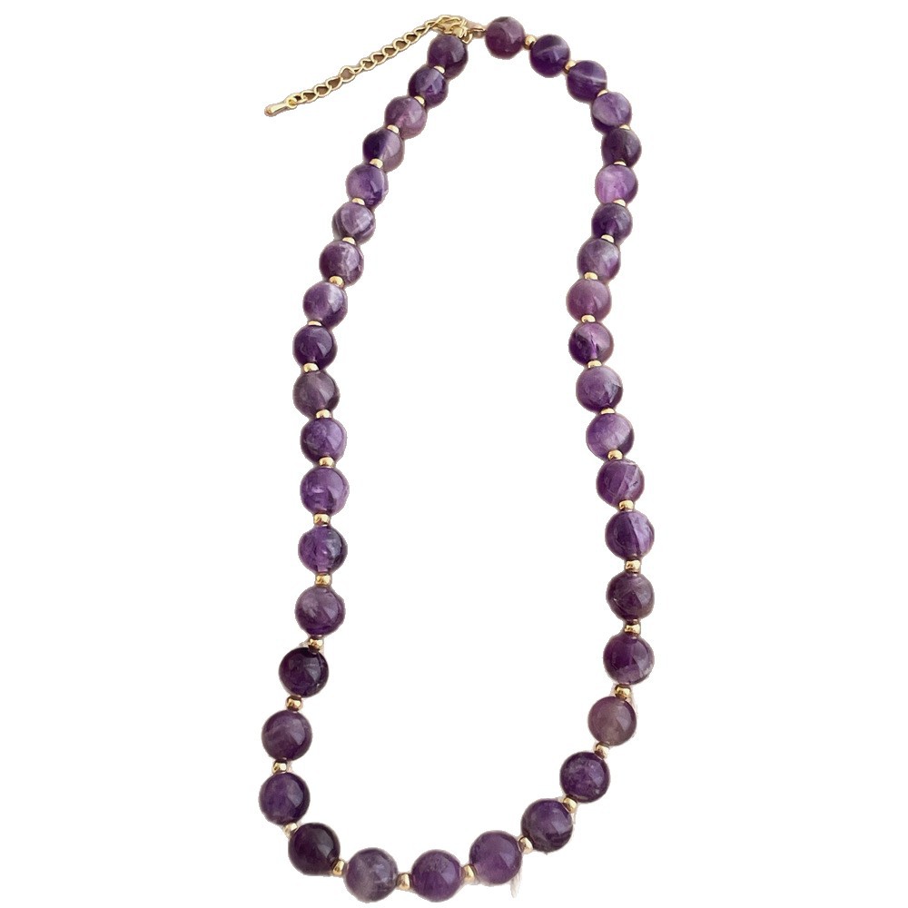 夏日度假紫色天然石项链女时尚优雅串珠锁骨链高级感轻奢手链配饰