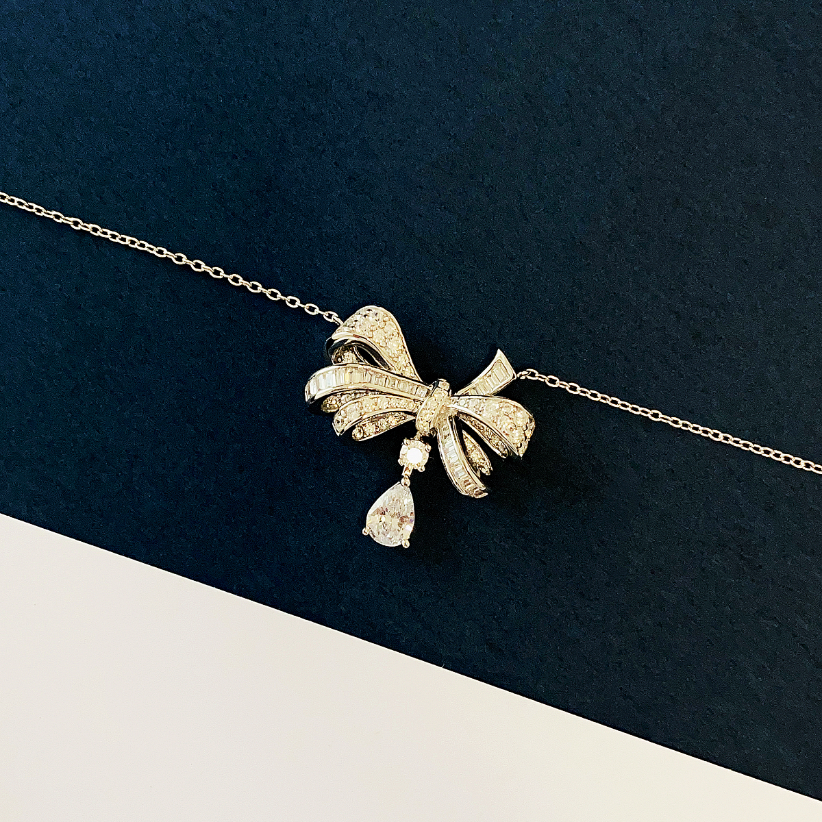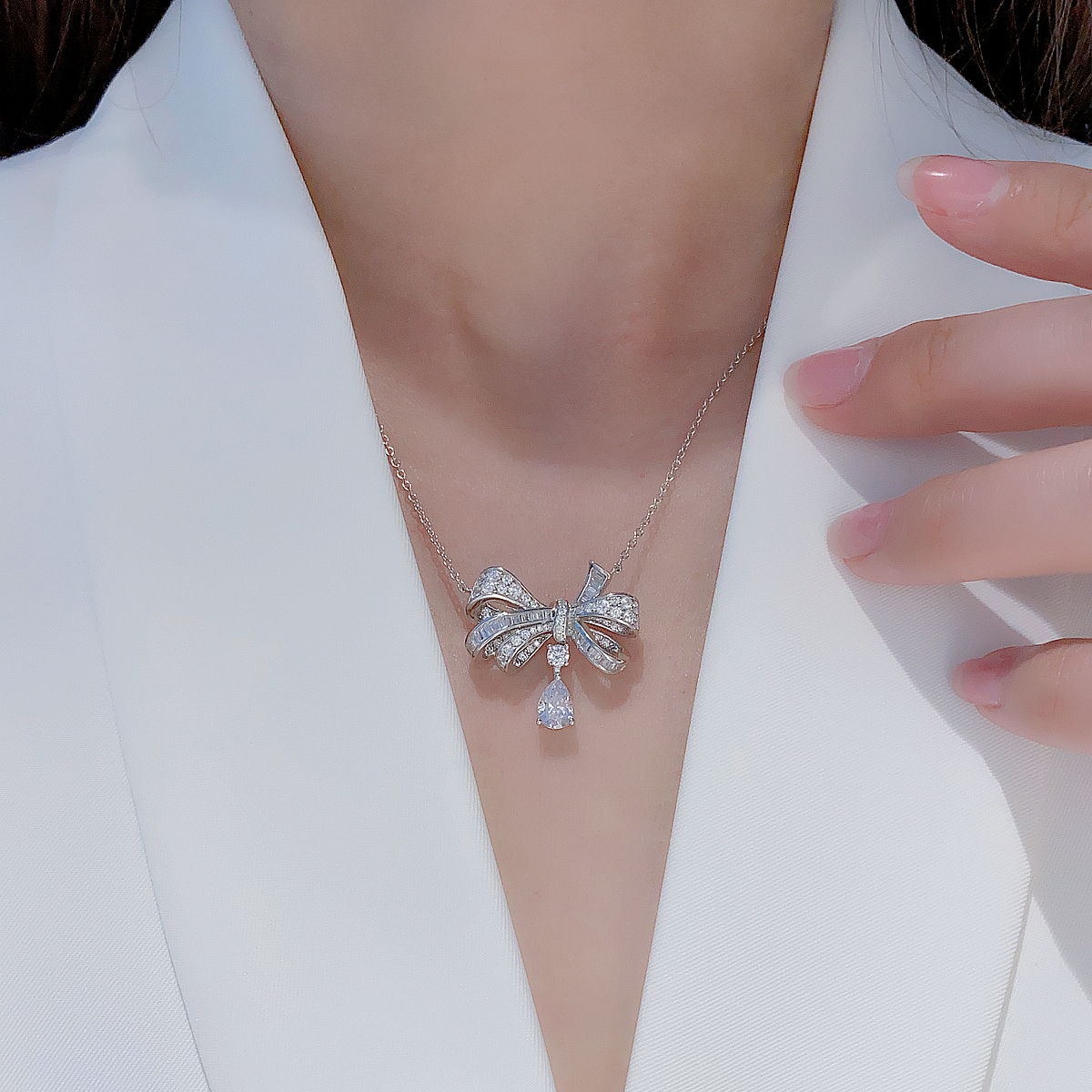 质感!水滴蝴蝶项链轻奢高级感925纯银锁骨链满天星幻影高碳钻