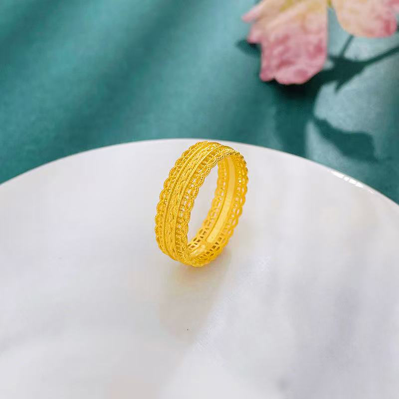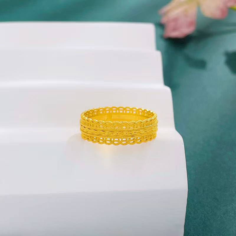 5G黄金腰缠万贯戒指女999足金镂空复古招财进宝纯金钱币指环送礼