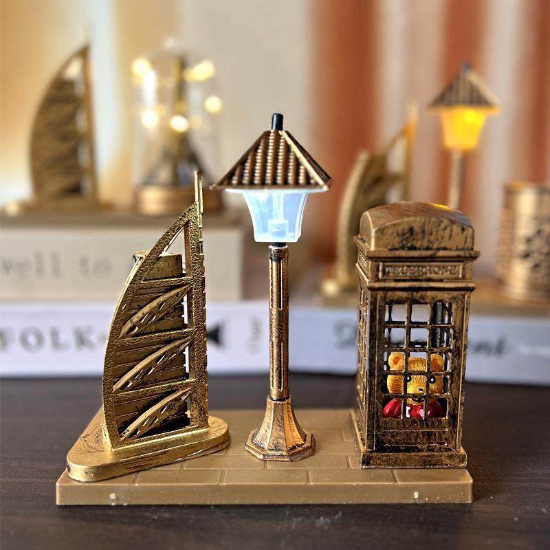 创意彷古帆船小夜灯笔筒摆件 学生礼品白色沙漏双色小夜灯摆件定