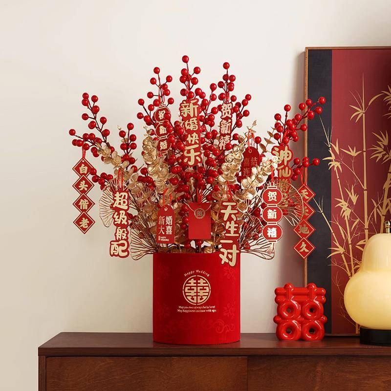 贝汉美真桶结婚抱订抱仿花发25031303财果福桶客厅婚房装饰摆件新