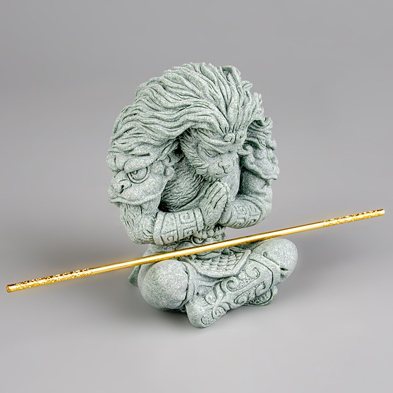 国潮青砂石大圣悟空悟道居中式家办公室茶室桌面摆件装饰开业送礼