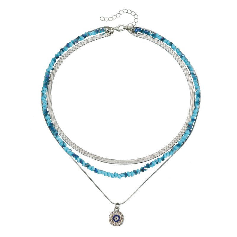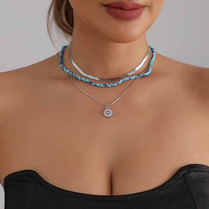 欧美跨境饰品轻奢时尚恶魔之眼项链切面蓝色水晶潮搭necklace颈链