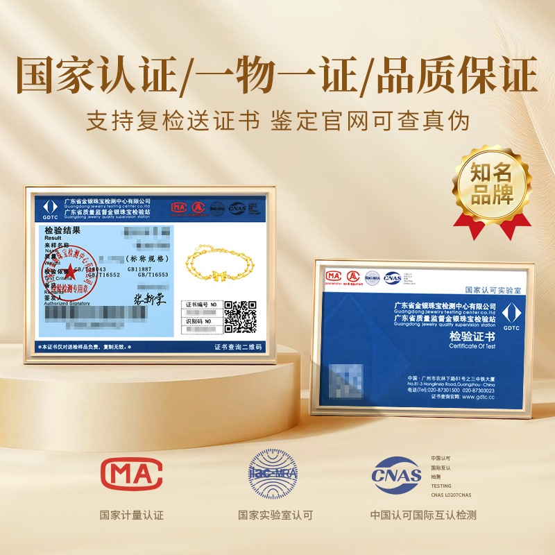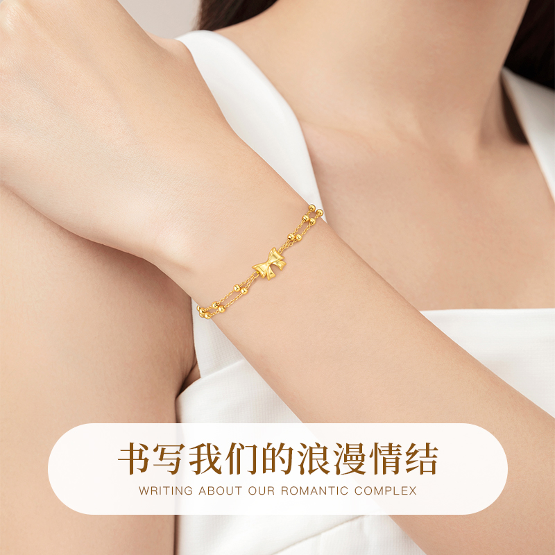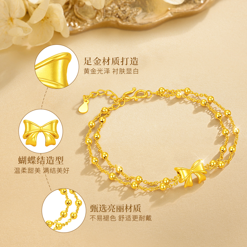 中国黄金央创足金蝴蝶结手链女款足金转运珠女士圣诞节礼物送女友