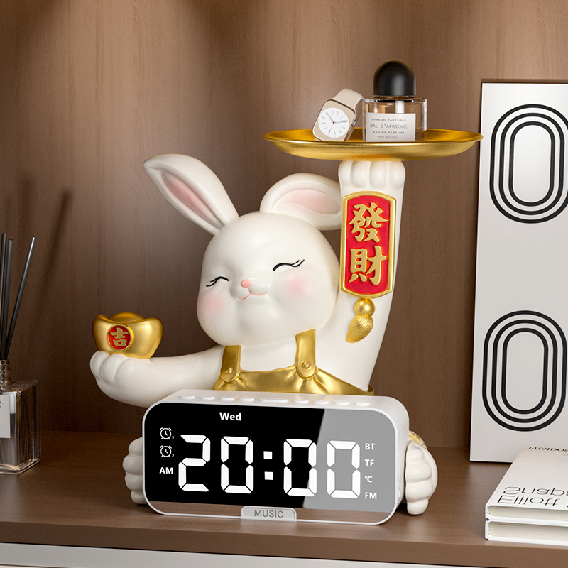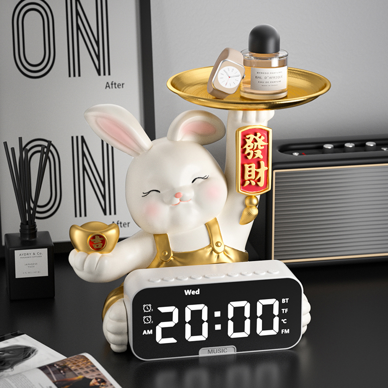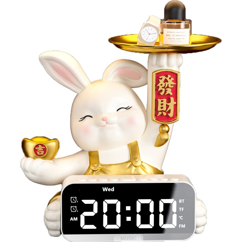 创意兔时钟玄关摆件智能蓝牙电子表客厅桌面酒柜装饰乔迁新居礼物