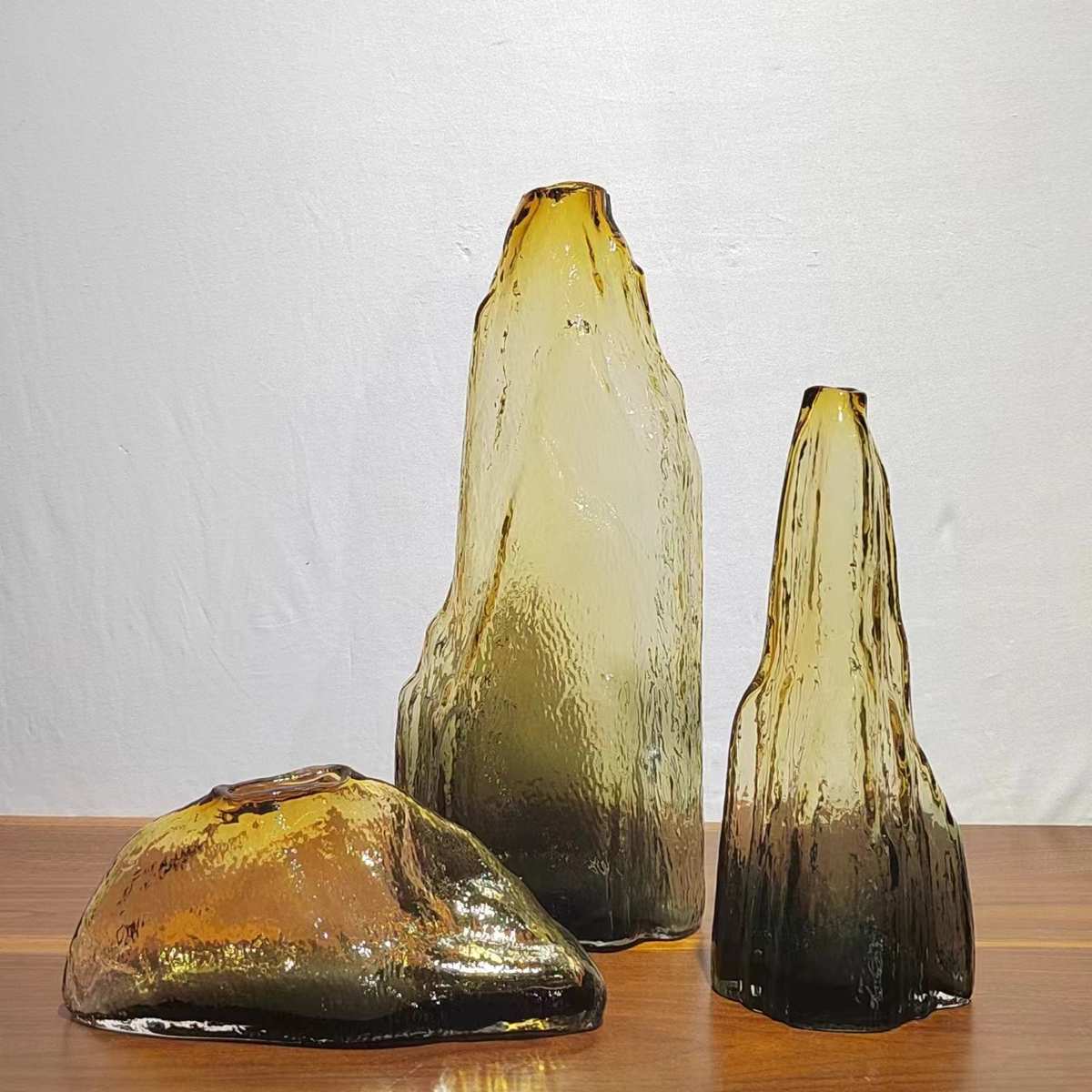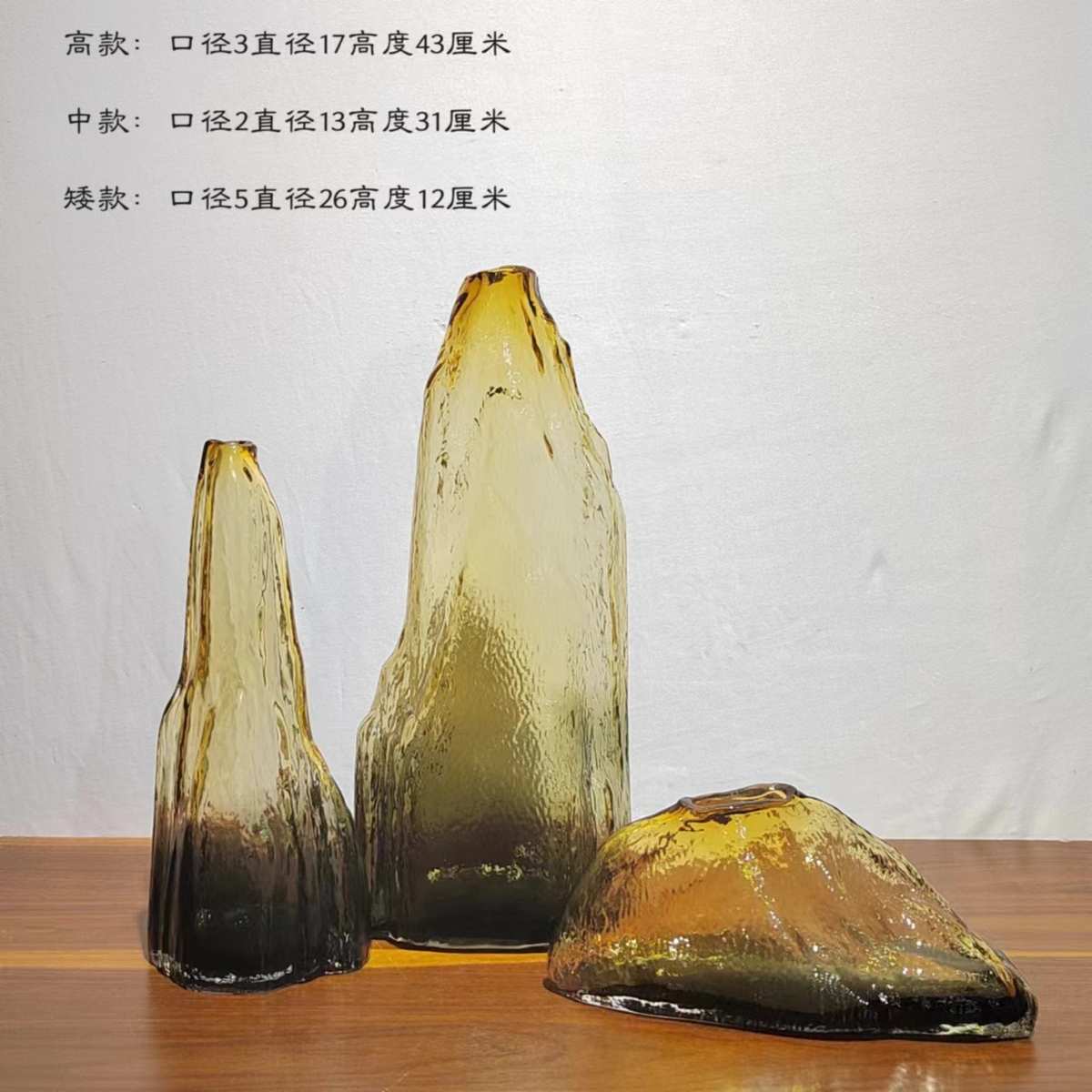 现代简约假山摆饰玻璃花瓶插花摆件家居样板房客厅软装饰品摆件