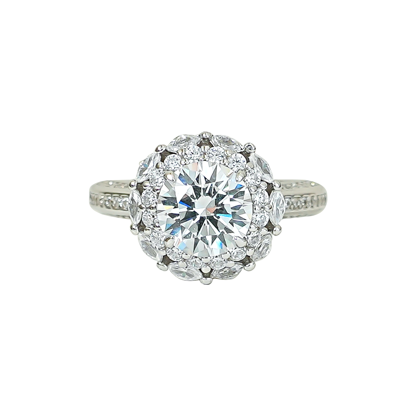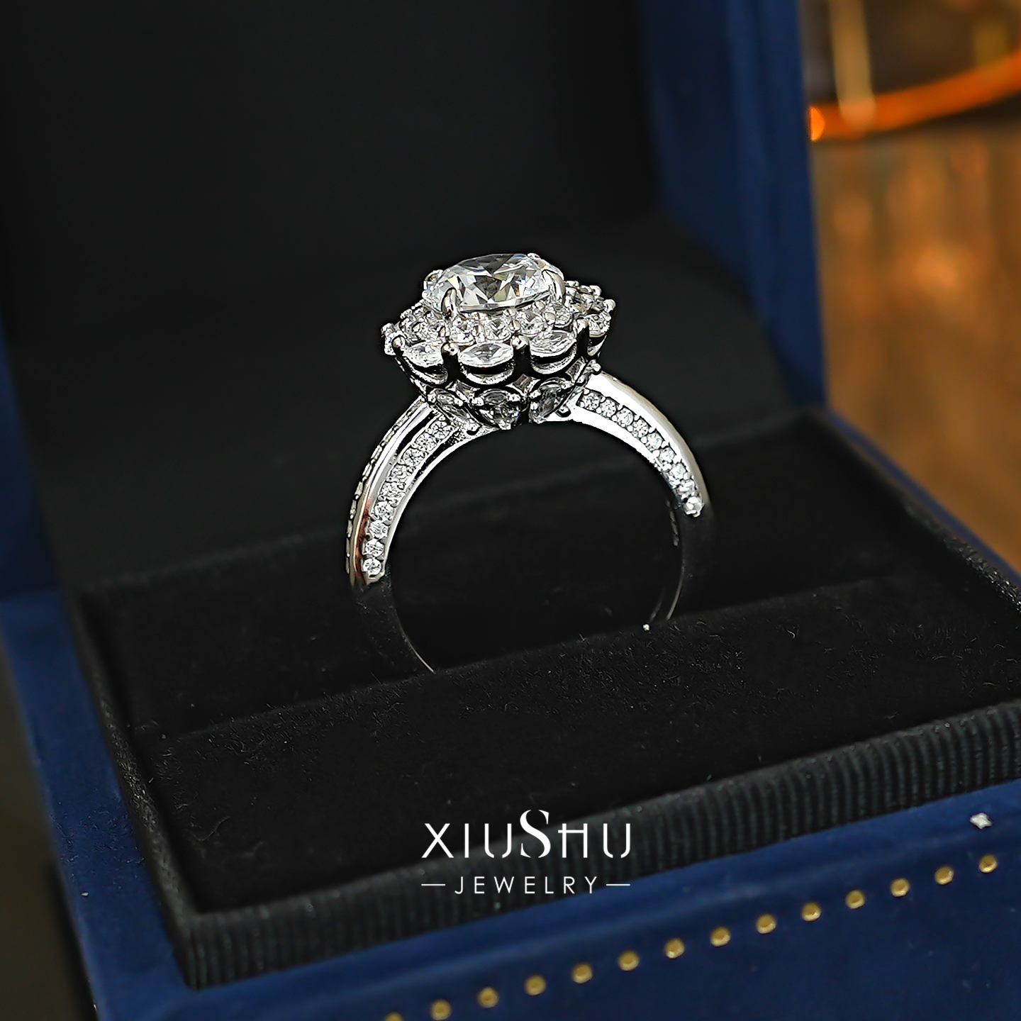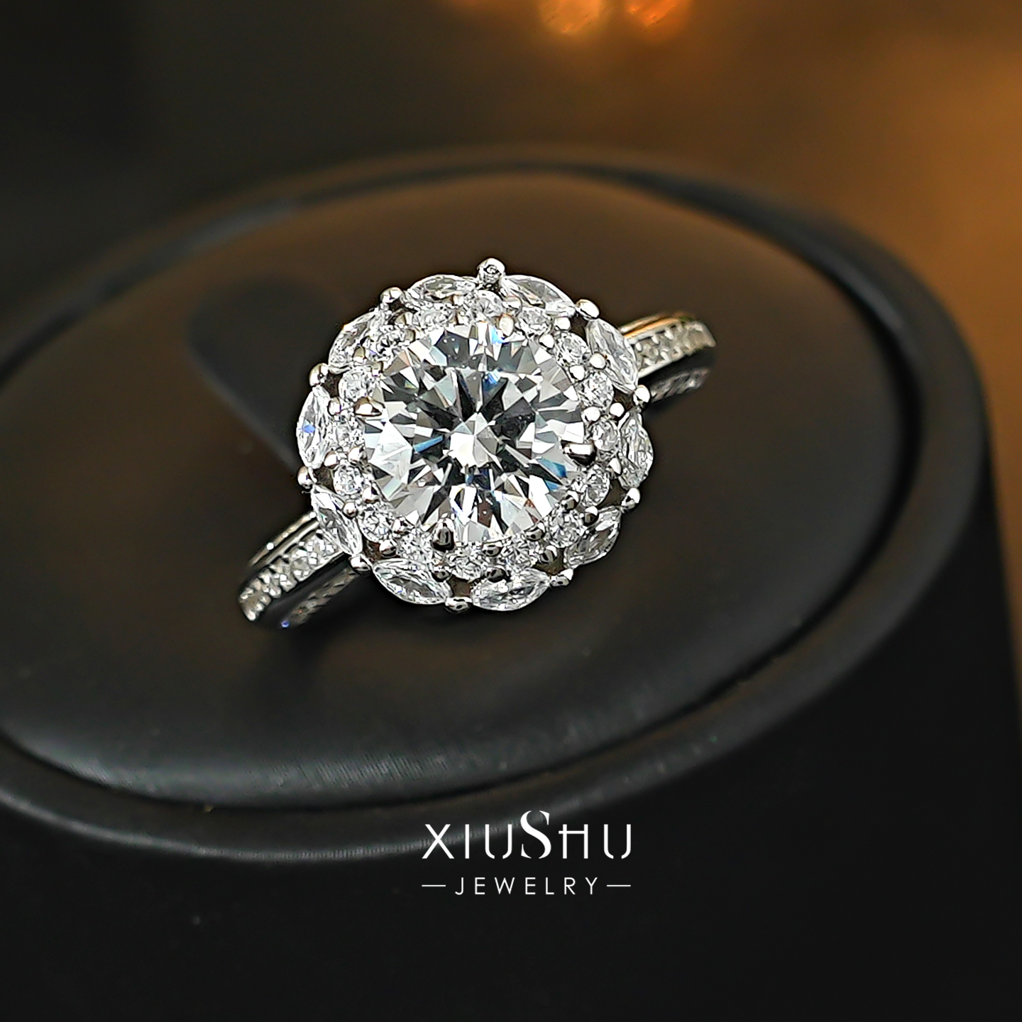 【闪耀时刻】奢华花苞925银圆钻戒指镶嵌高碳钻求婚钻戒礼物女友