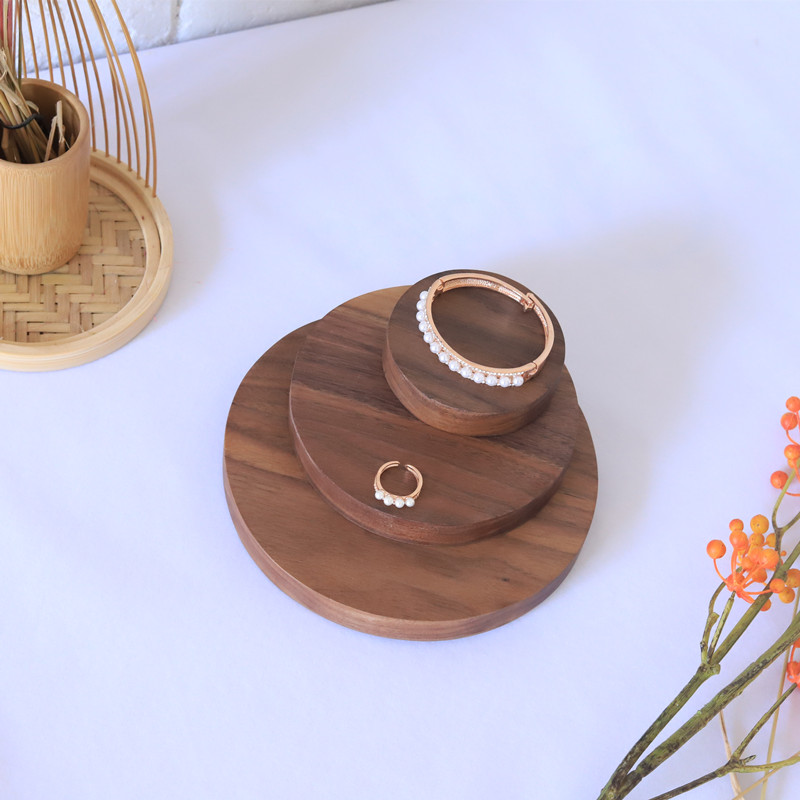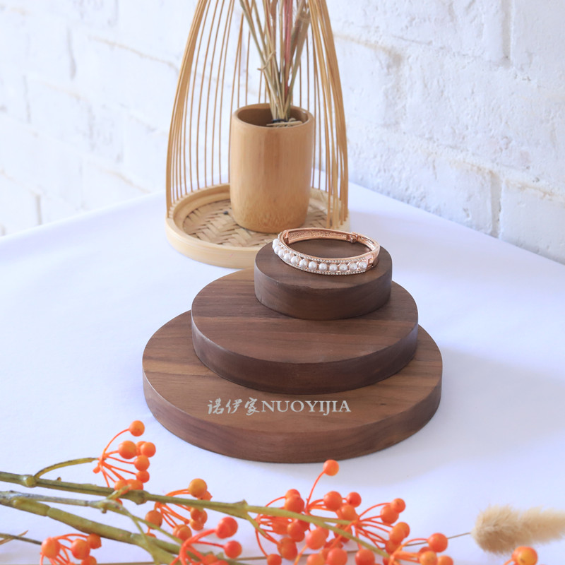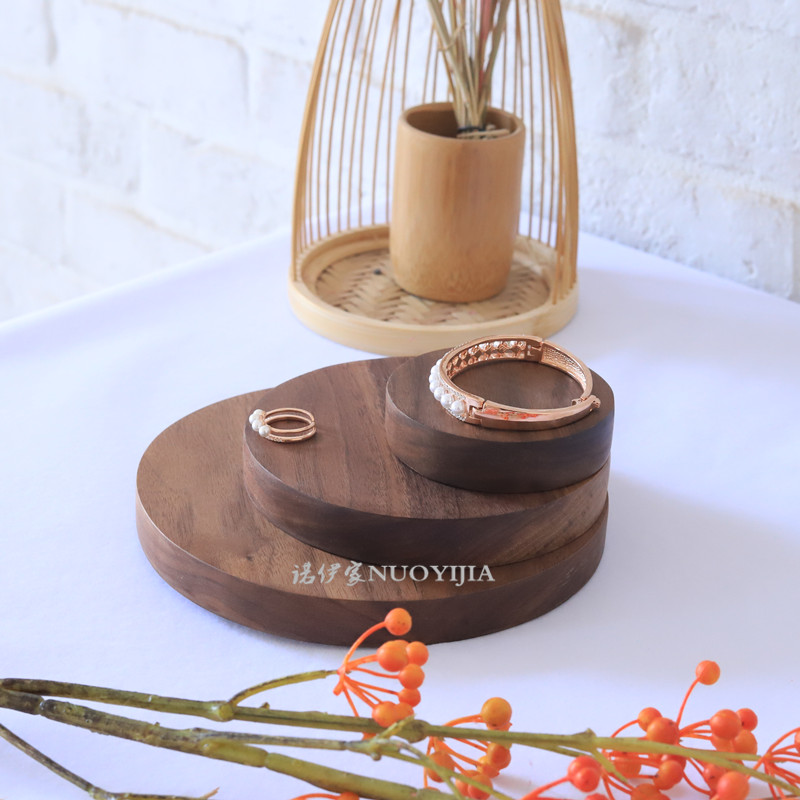 黑胡桃木圆形半圆手链架耳环首饰摆件实木手镯架组合饰品拍摄道具