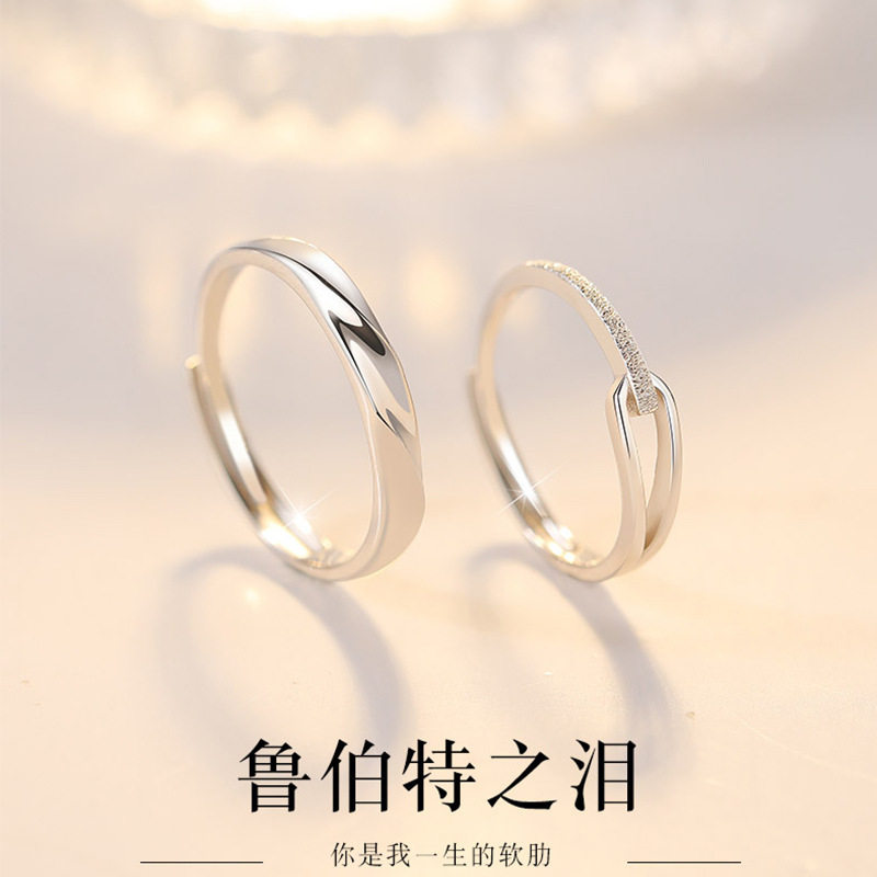 S925纯银戒指鲁伯特之泪对戒男女一对饰品原创小众设计简约食指环