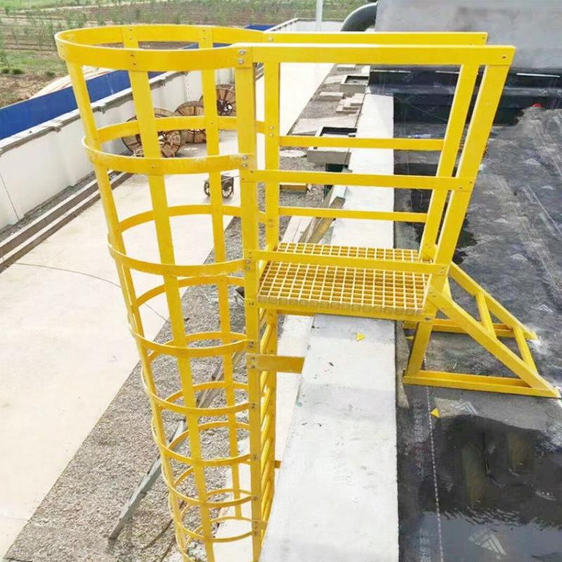 广州现货玻璃钢护笼扶手黄色消防护笼爬梯爬梯电工绝缘护直爬梯
