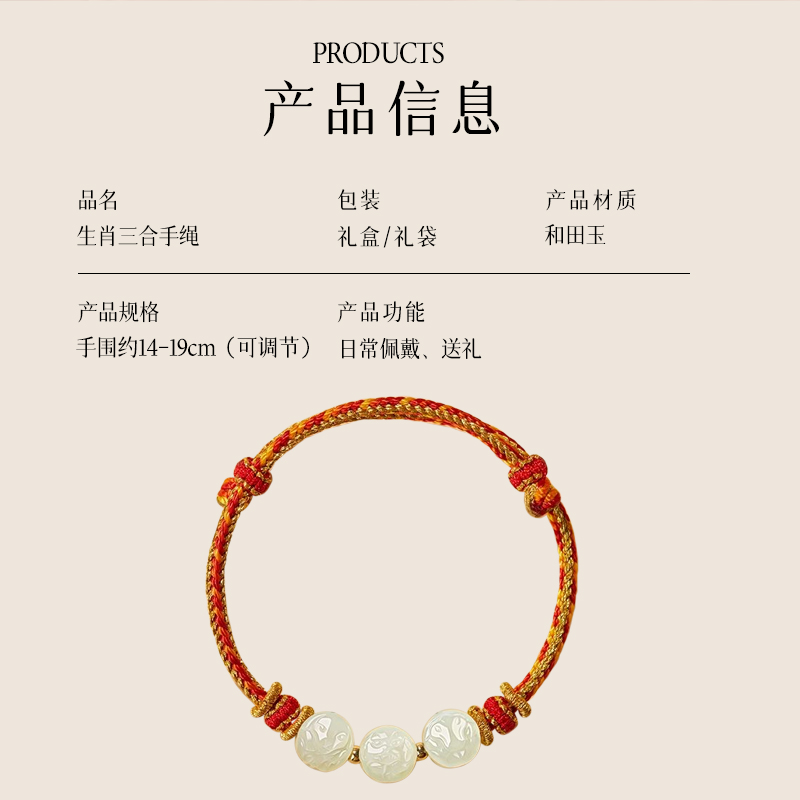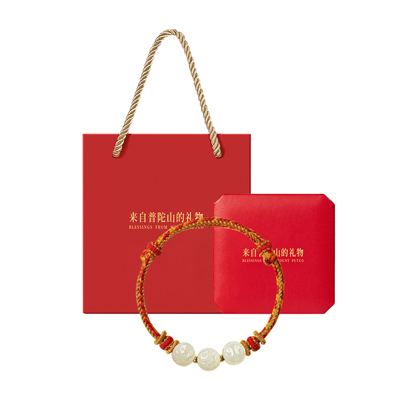 遇见普陀山2026马年本命年手串女款护身符红绳和田玉三合手链男士