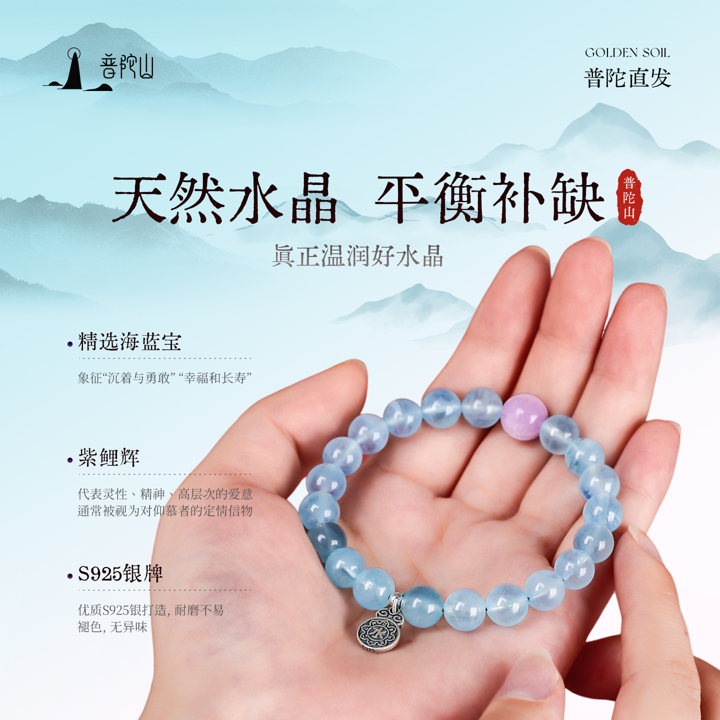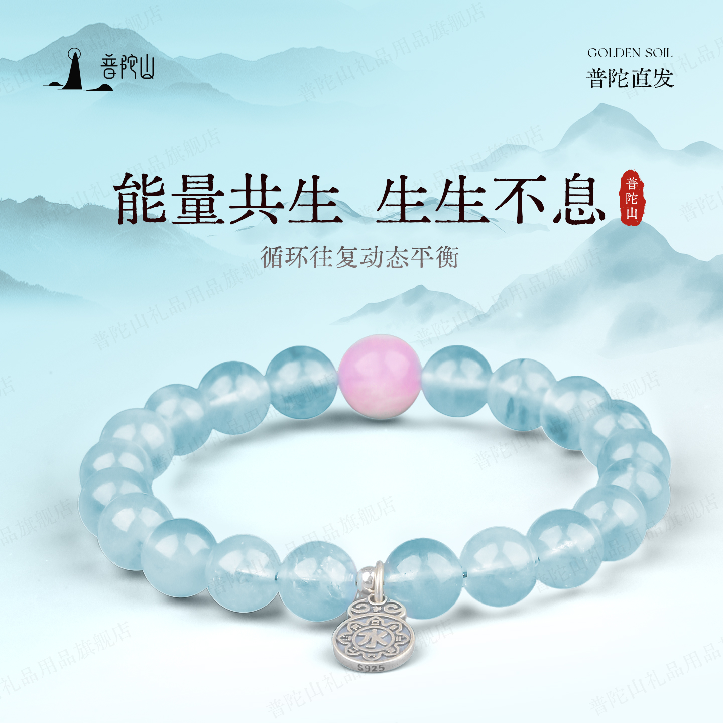 普陀山水晶手串女官方旗舰店五行补缺海蓝宝手链男礼物金木水火土
