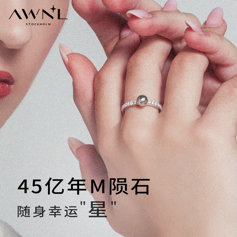 AWNL北欧M陨石月亮风暴戒指女小众浪漫礼物送礼