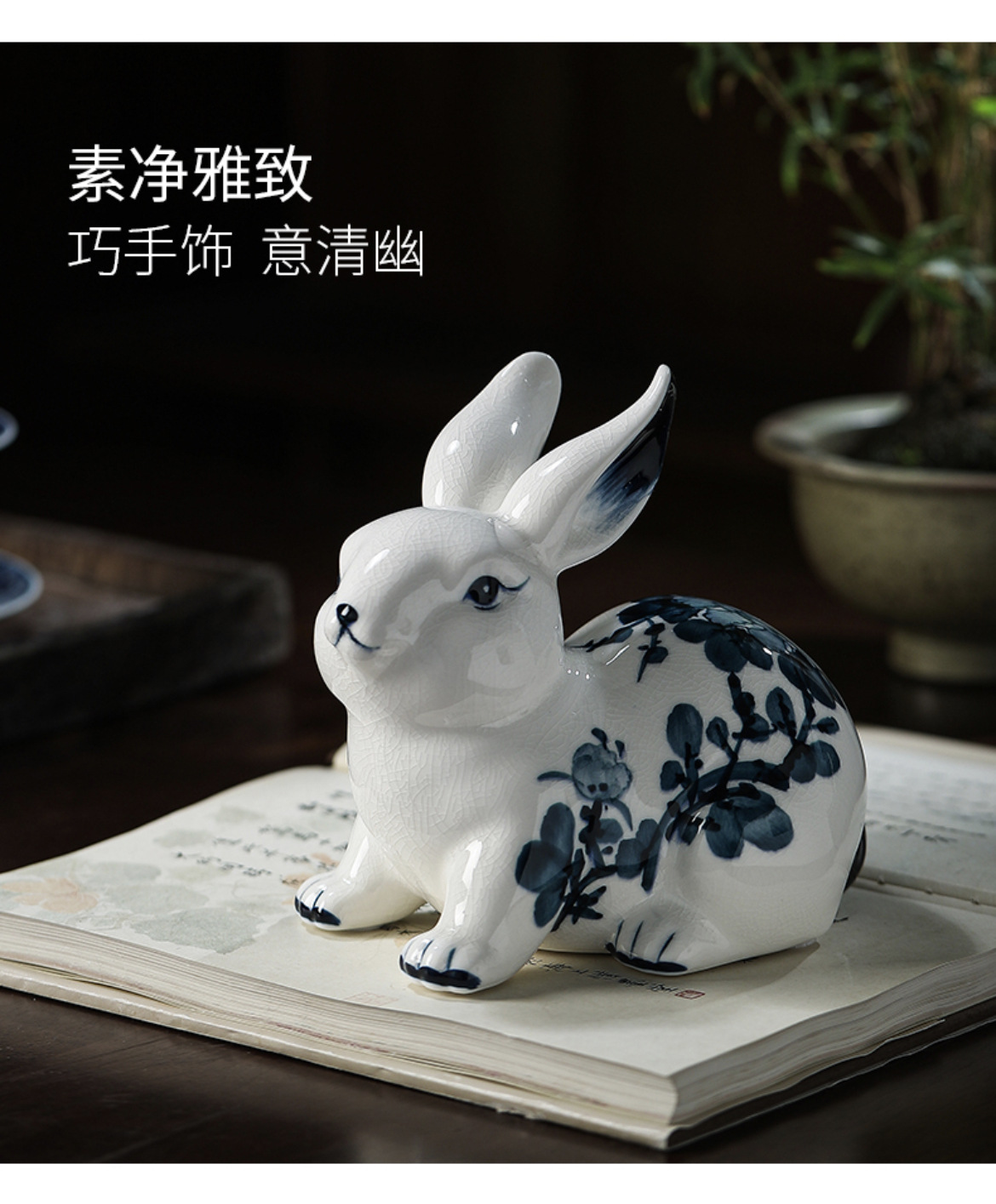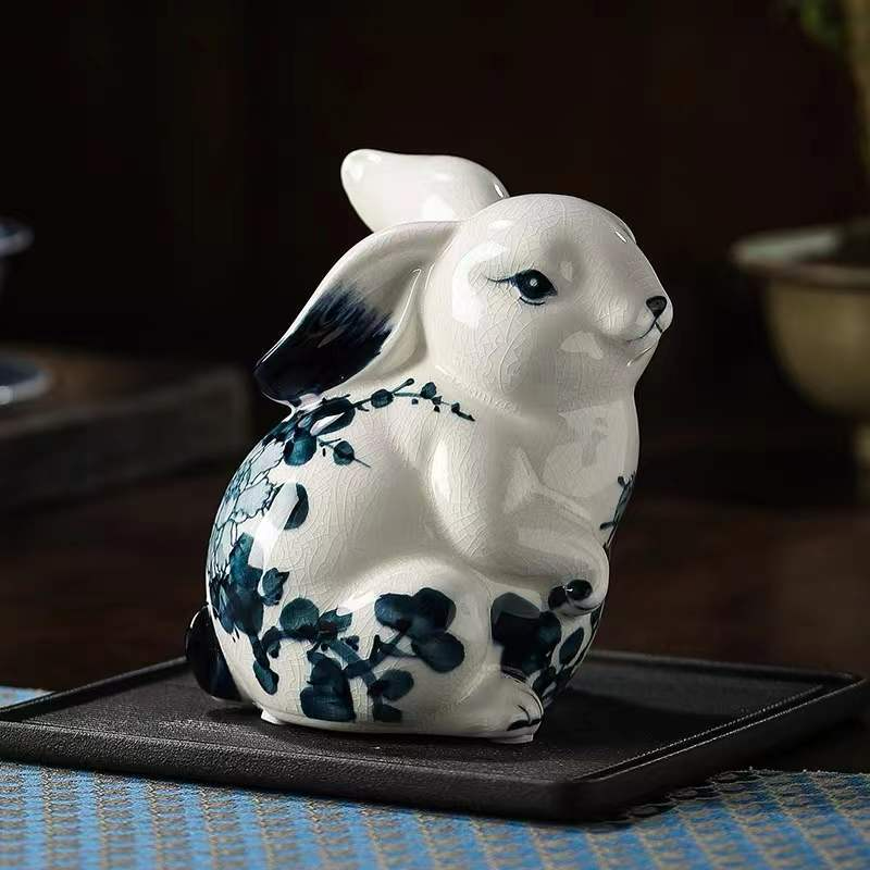 兔子摆件陶瓷祝福饰品现代可爱客厅桌面摆设陶瓷青花手绘陶瓷兔