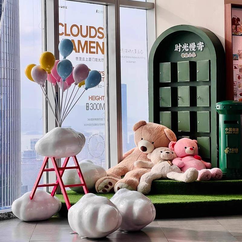 户外玻璃钢云朵秋千雕塑网红街公园景区草坪装饰拍照打卡引流摆件