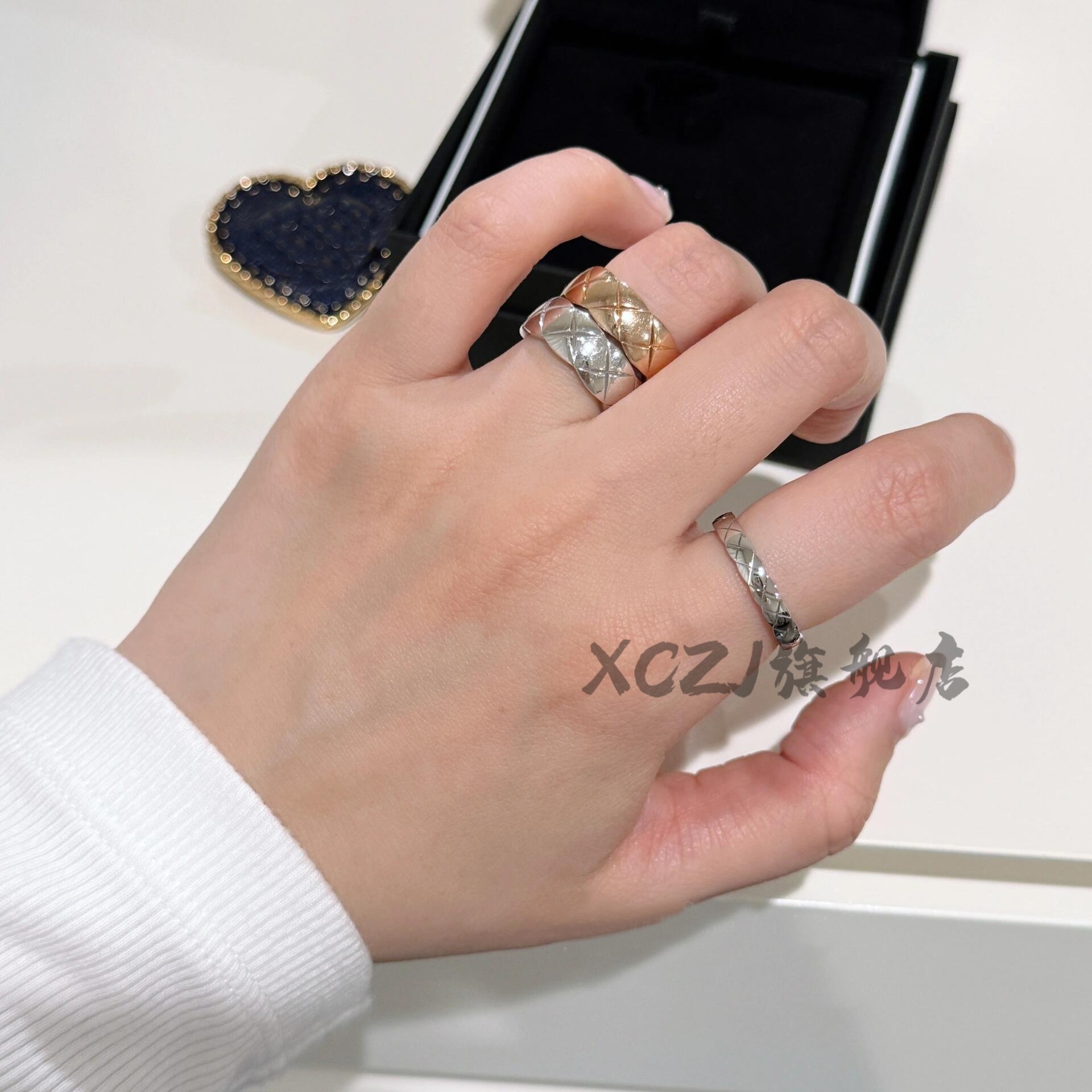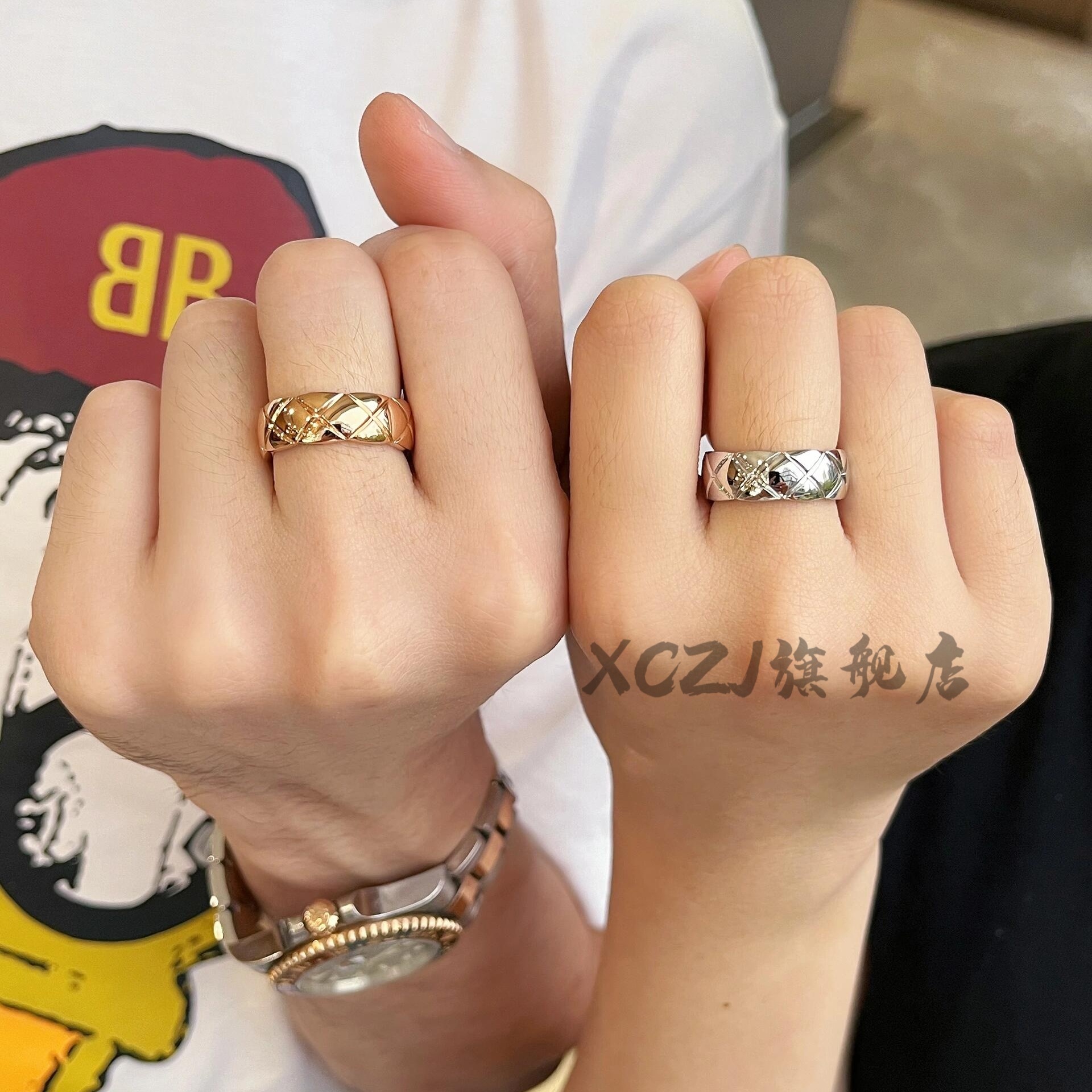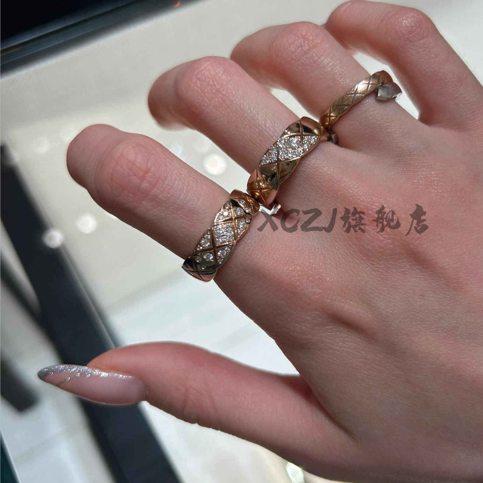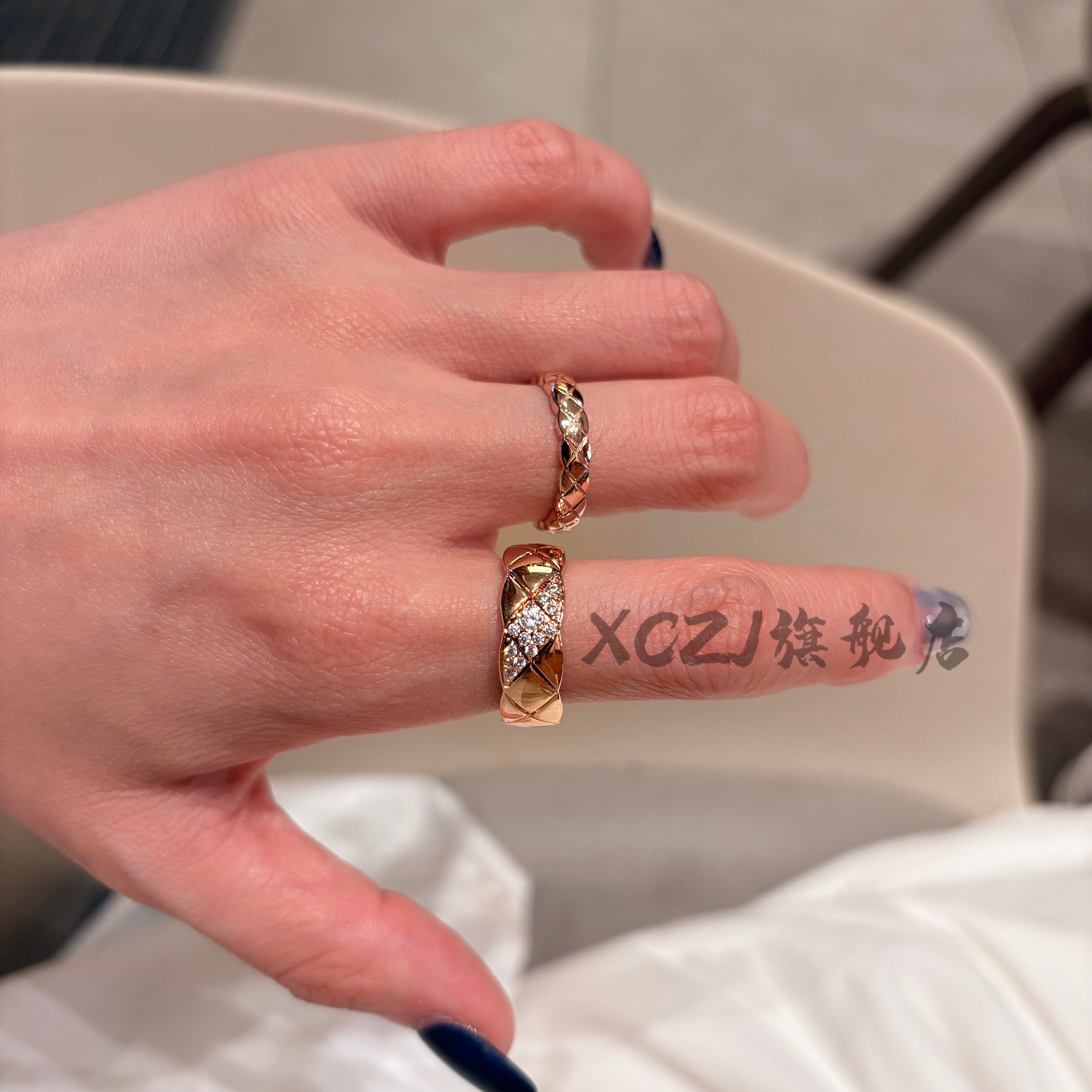 正确版小香风coco菱格纹情侣对戒戒指男女18K玫瑰金菱形刘雯同款