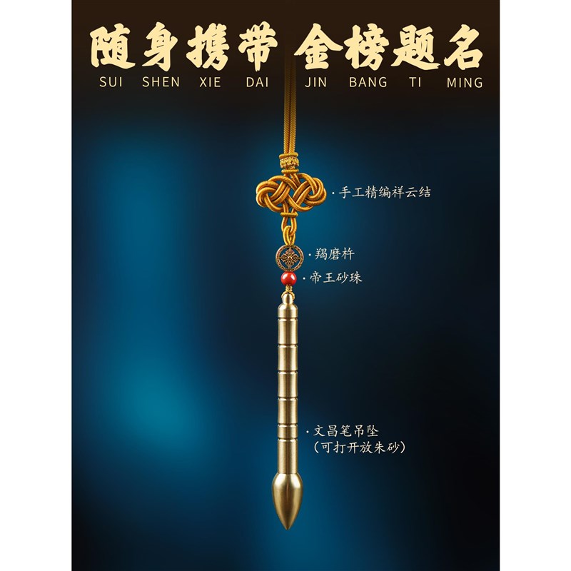 速发文昌笔吊坠纯黄铜可打开放朱砂文昌笔手工编织挂绳中高考学生
