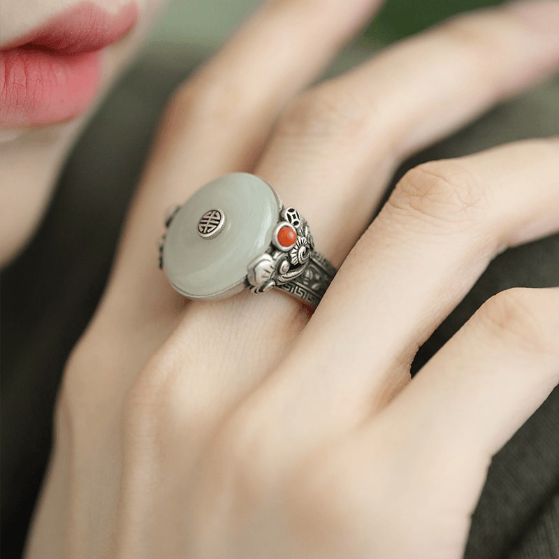 925银b新中式复古风平安扣戒指环和田玉轻奢高级感个性简约民族风