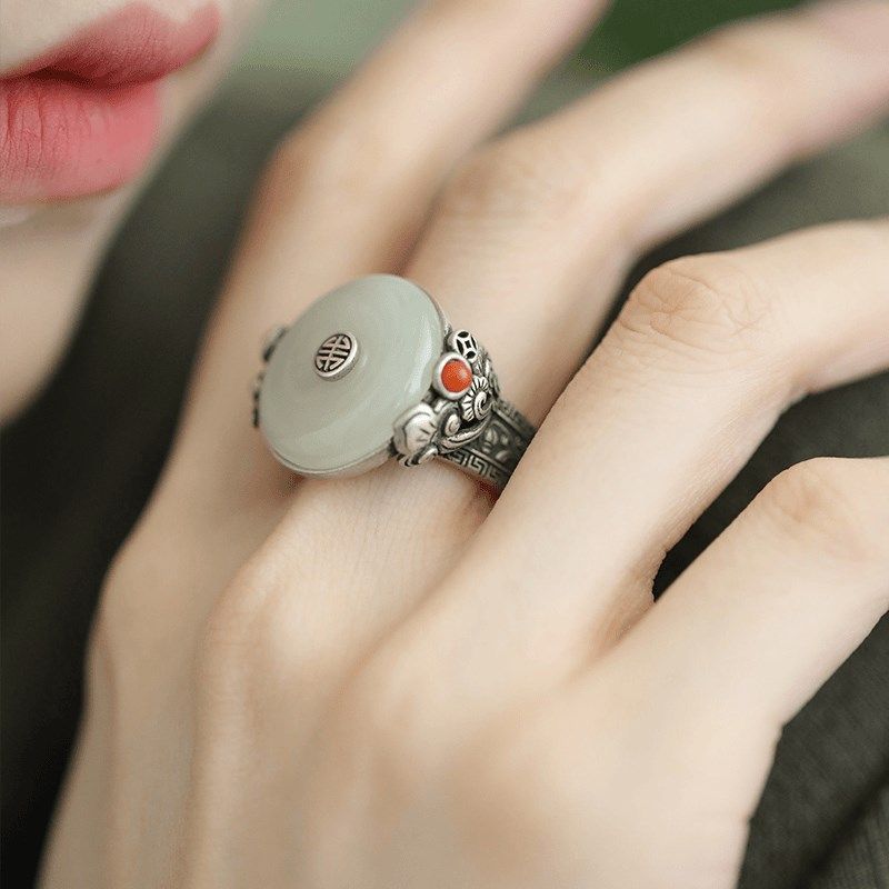 925银新中f式复古风平安扣戒指环和田玉轻奢高级感个性简约民族风