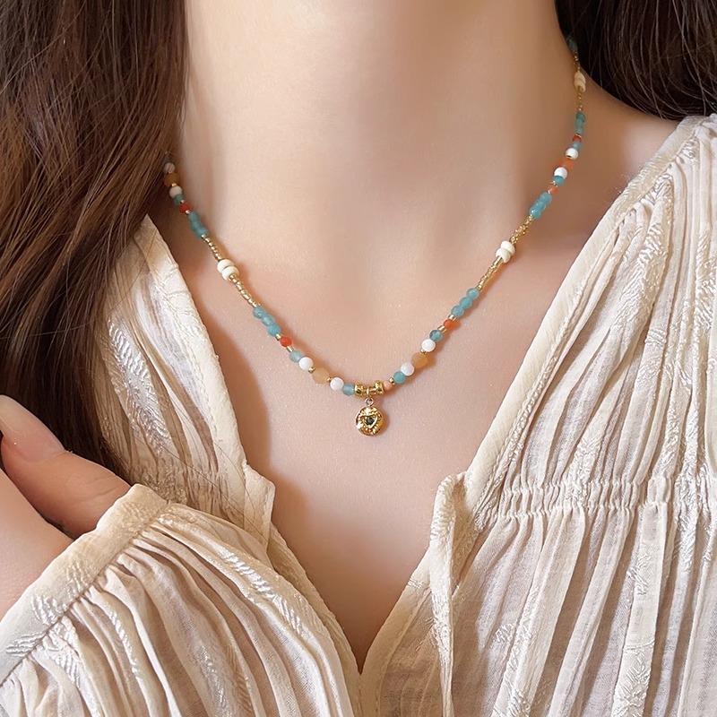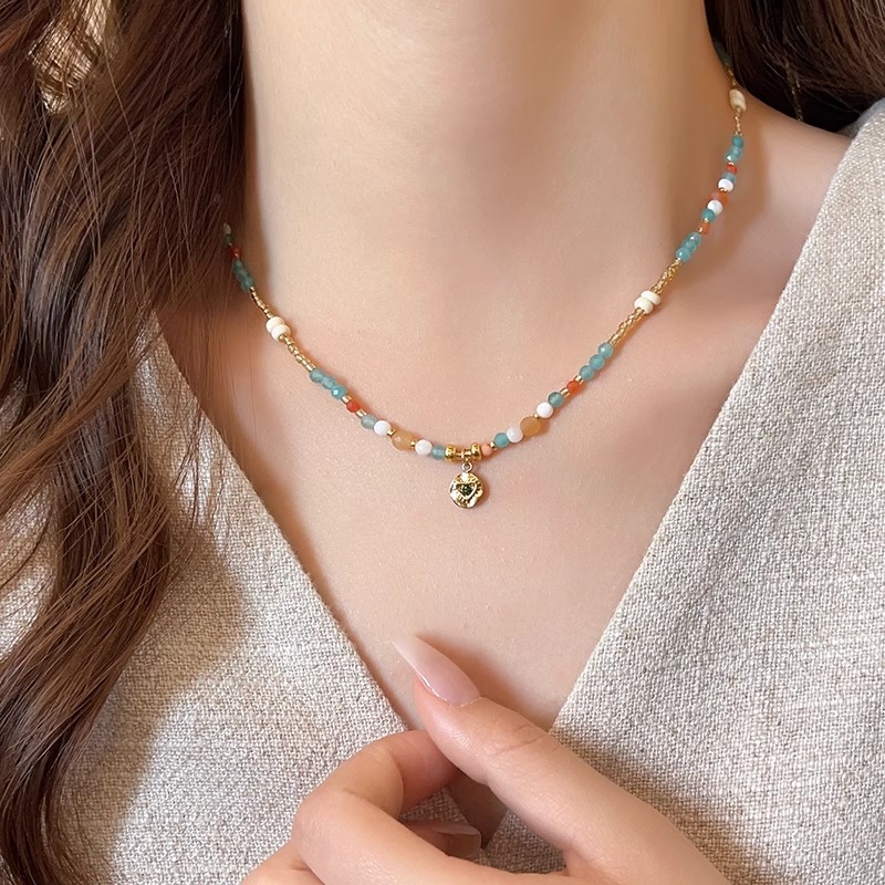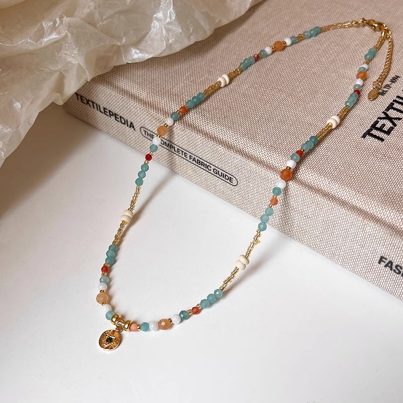 MEILAIFUREN高端定制 高级感颈链多巴胺小米珠串珠项链女圆牌吊坠
