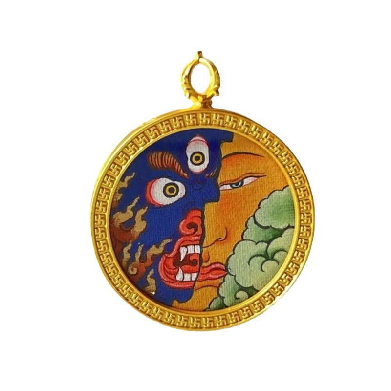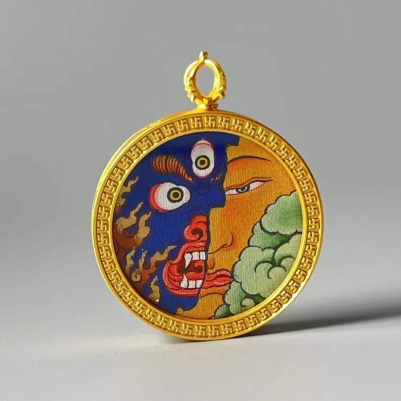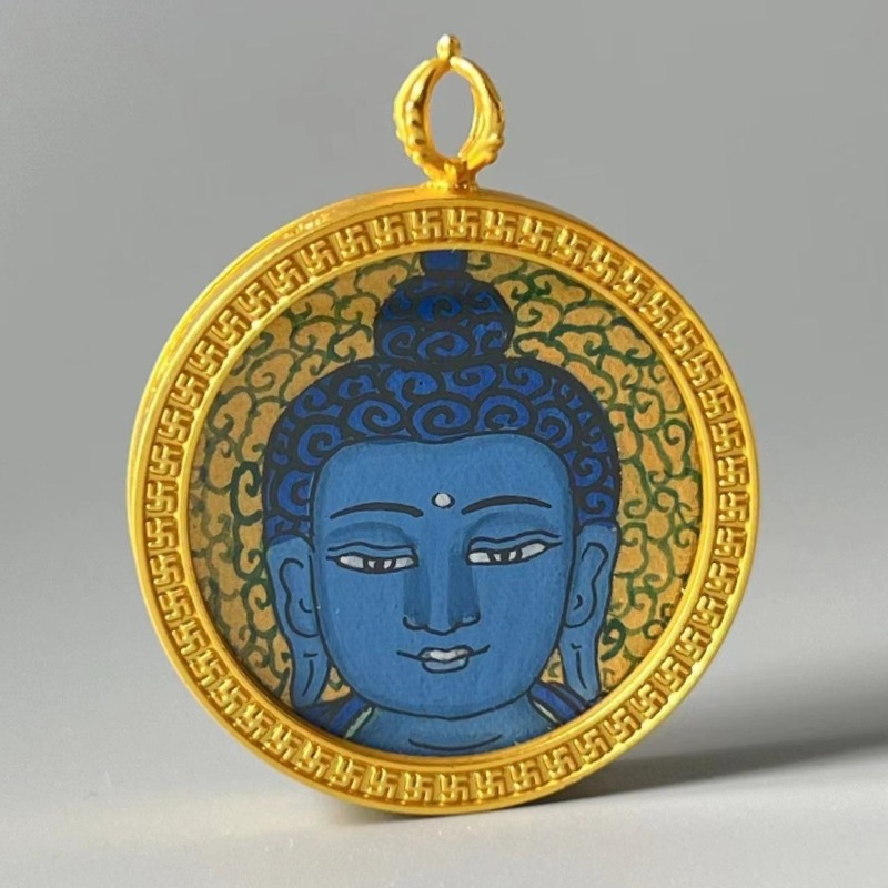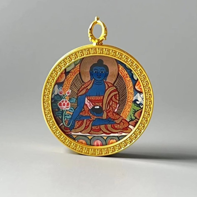 手绘唐卡矿物颜料药师佛一念之间吊坠小唐卡项链金色乌盒