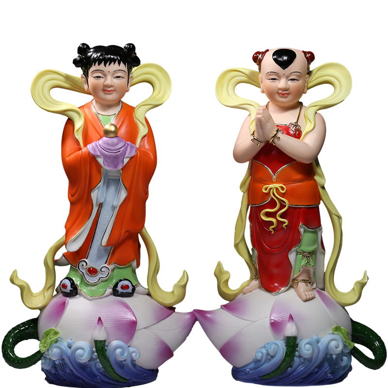 8至14寸彩绘金童玉女佛像陶瓷童男童女佛堂佛具用品供奉摆件