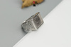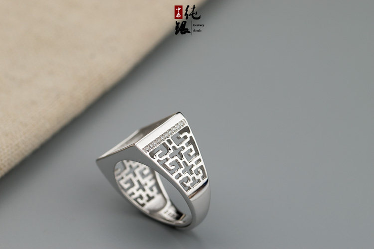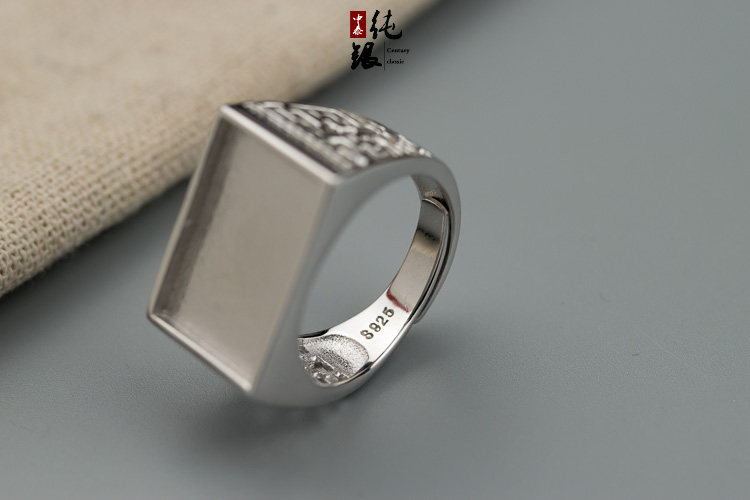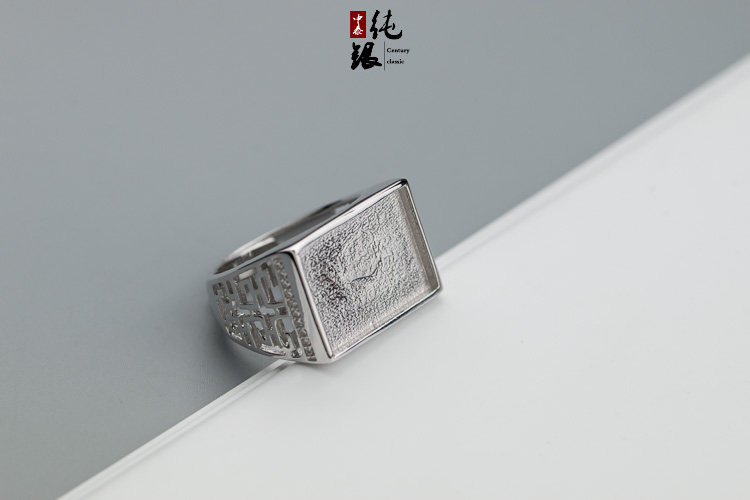 s925纯银封底大气男款中式回字纹戒指托空托绿松蜜蜡镶嵌13*18