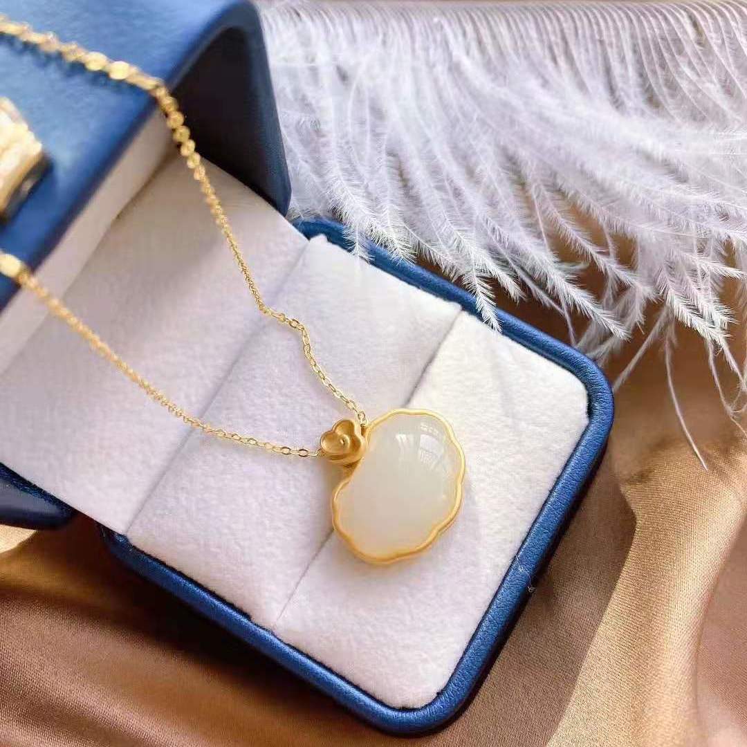 玉长命锁项链女祥云玉如意吊坠女款平安锁送闺蜜女友生日礼物