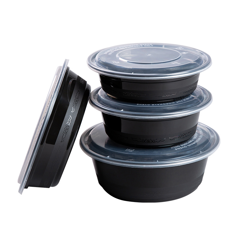 美式350ml圆形打包盒外卖一次性餐盒商用加厚黑色饭盒带盖塑料碗