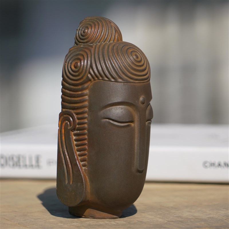 新中式禅意无相佛头摆件铁艺佛祖国风铁锈桌面工艺品小摆设仿铸铁