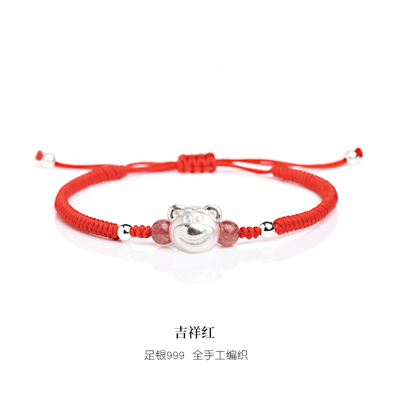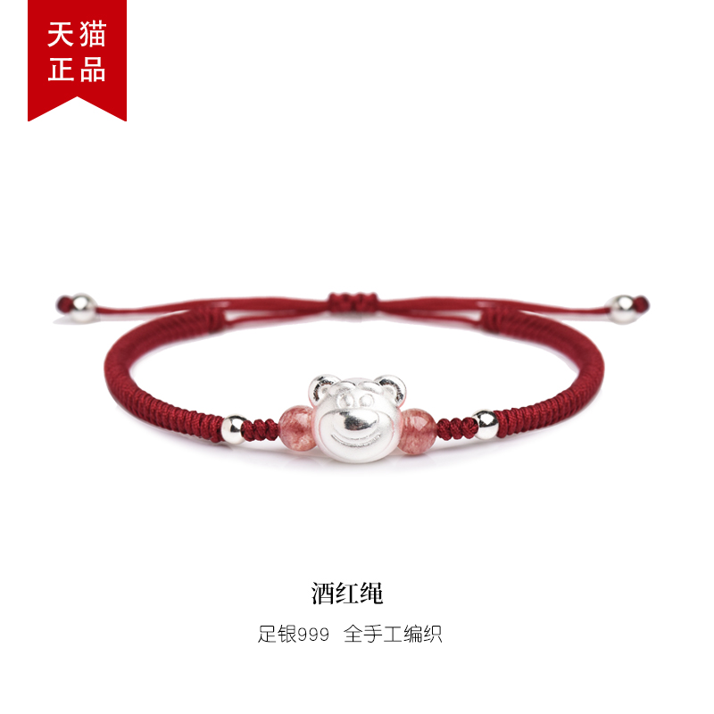 草莓熊999足银手链情侣纯银送女友生日闺蜜学生开学礼物官方直营