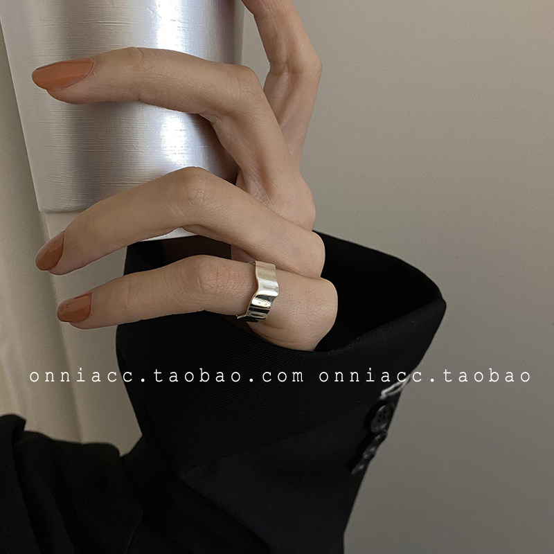 褶皱几何光面戒指女尾戒小指纯银宽边高级感轻奢小众冷淡风简约