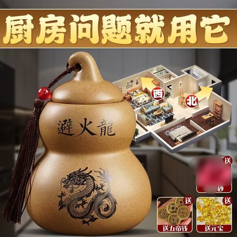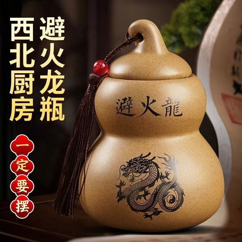厨房避瓶火龙摆件西北角火烧门男主人陶瓷乾卦陶土葫芦家用摆件