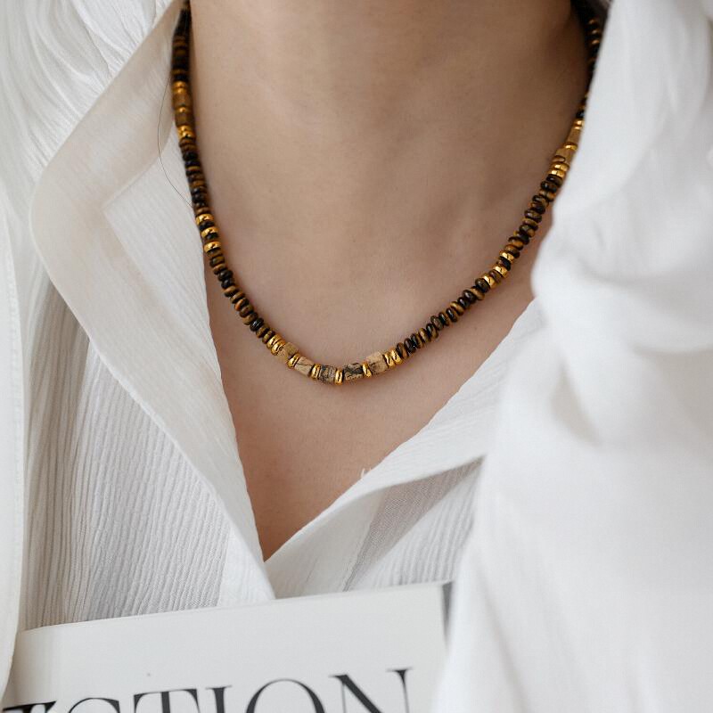 美拉德风天然虎眼石隔片串珠项链女锁骨链颈链叠戴高级感小众复古