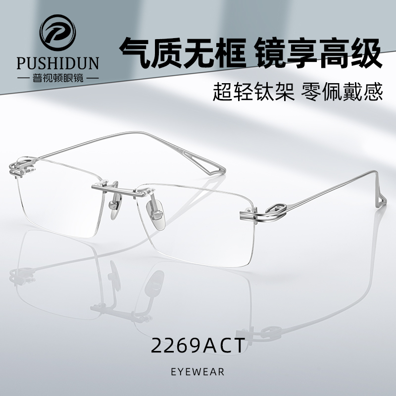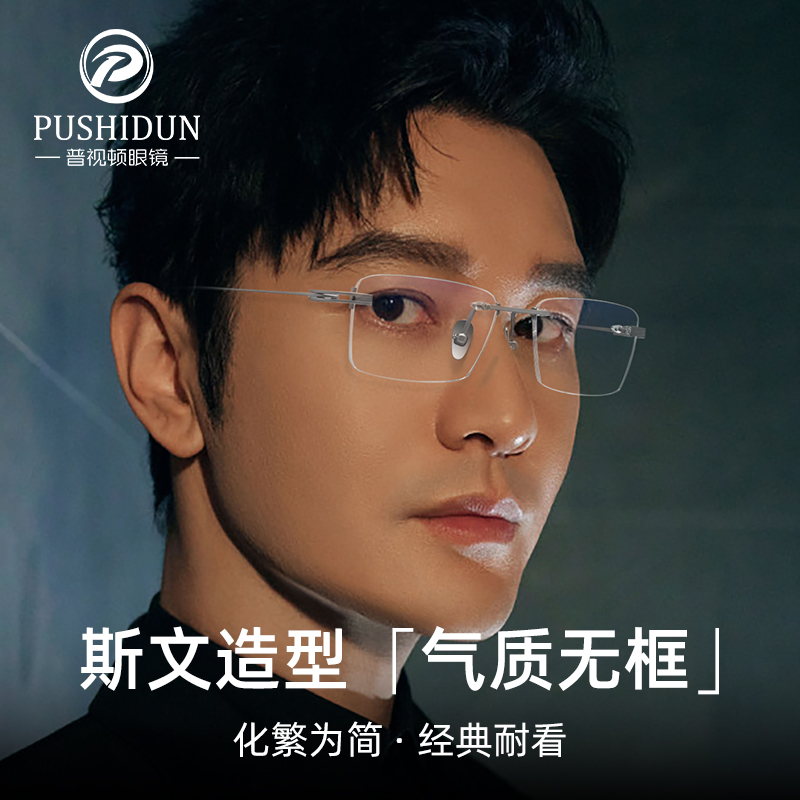 进口纯钛超轻无框近视眼镜商务男士大脸可配度数无边框变色眼睛架