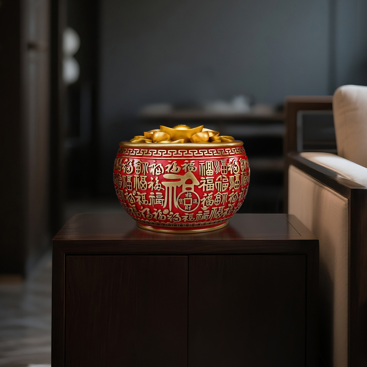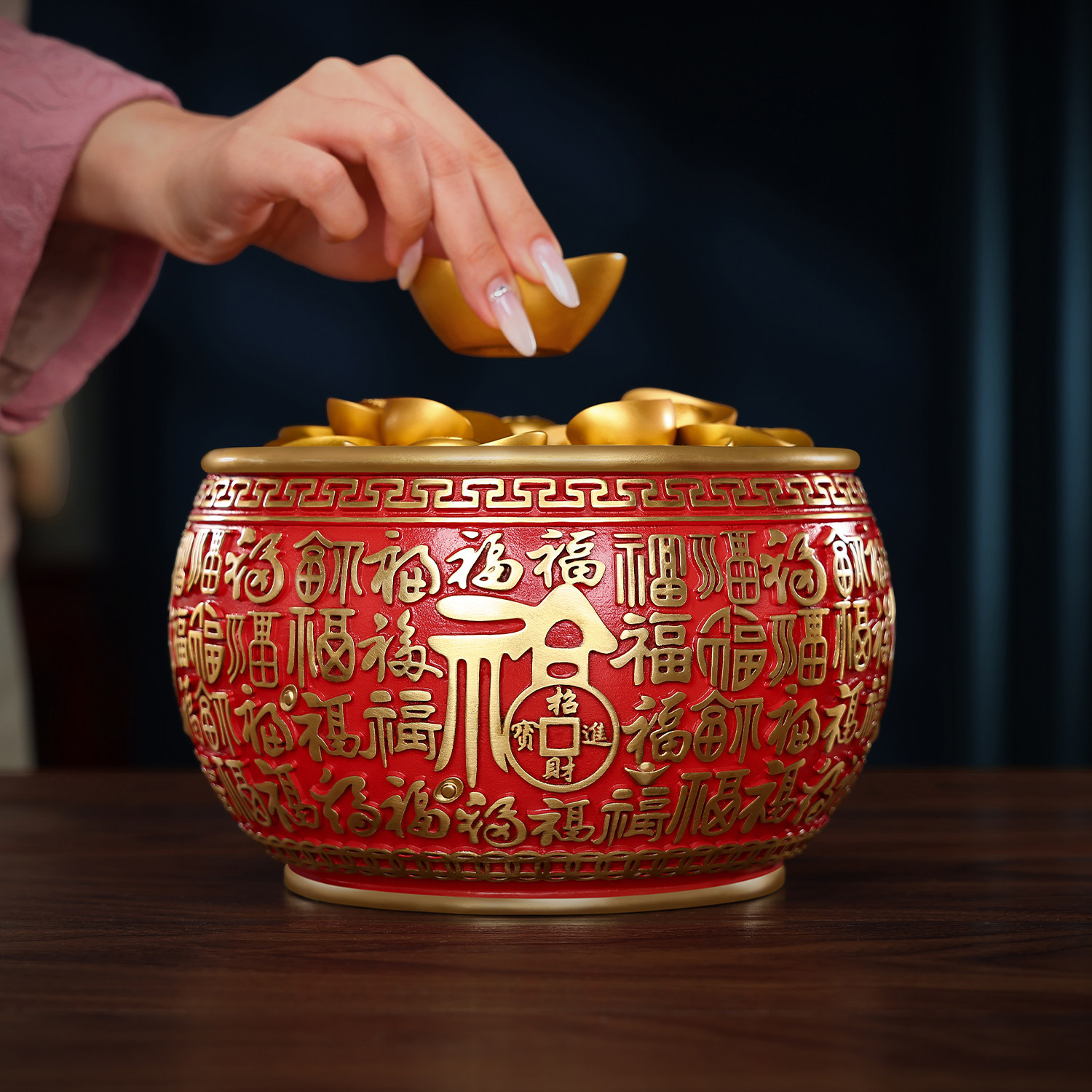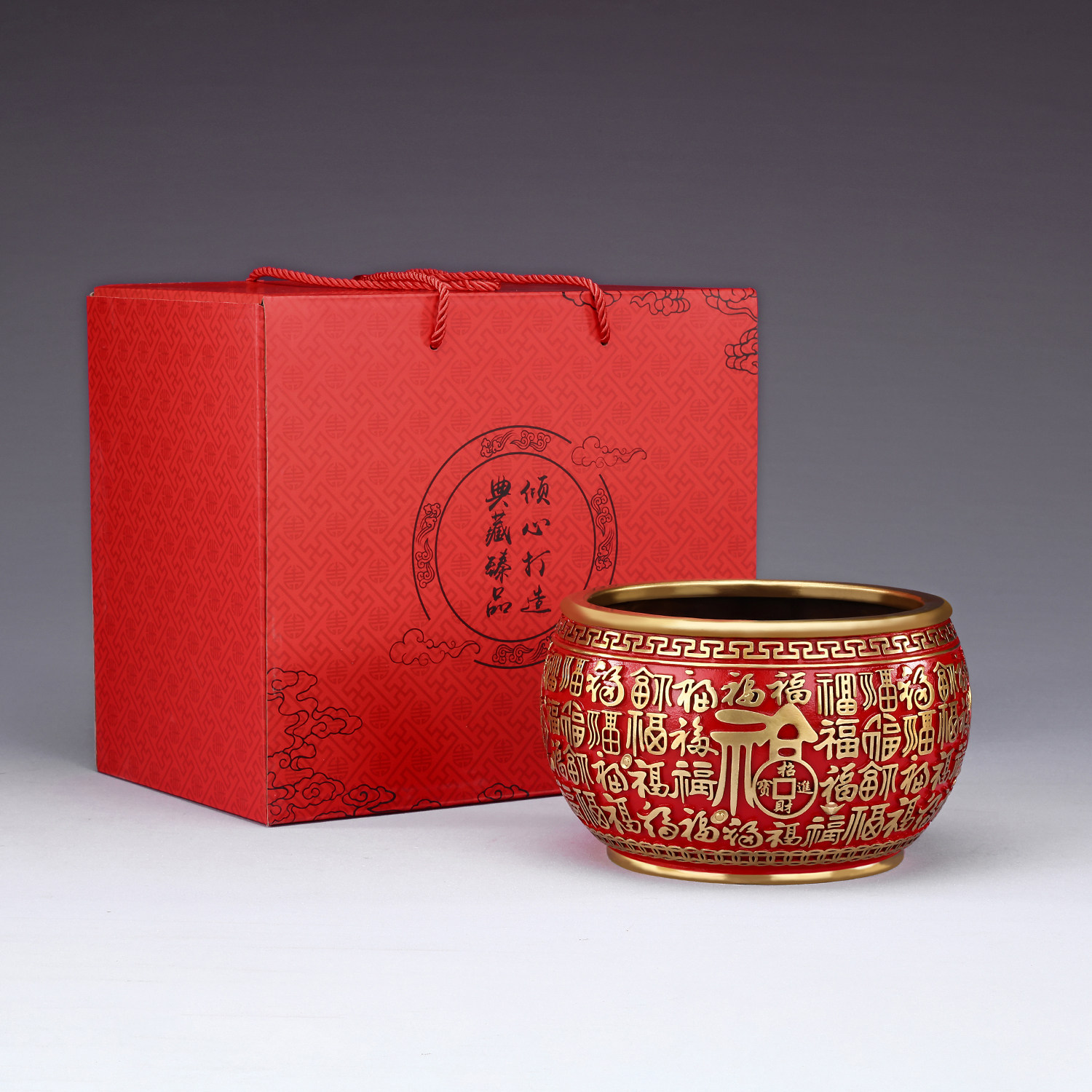 彩铜《百福聚宝盆》摆件家居玄关办公室桌面装饰品开业乔迁礼品