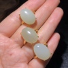 1A551 天然和田玉清水戒指蛋面鸽子蛋18/13mm防过敏掉色保色