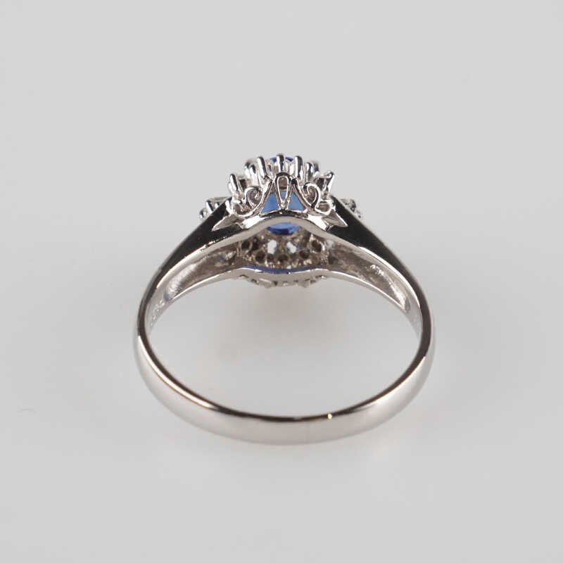 「9.5新」日本进口椭圆形切工钻石铂金900蓝宝石54号戒指BRANDOFF