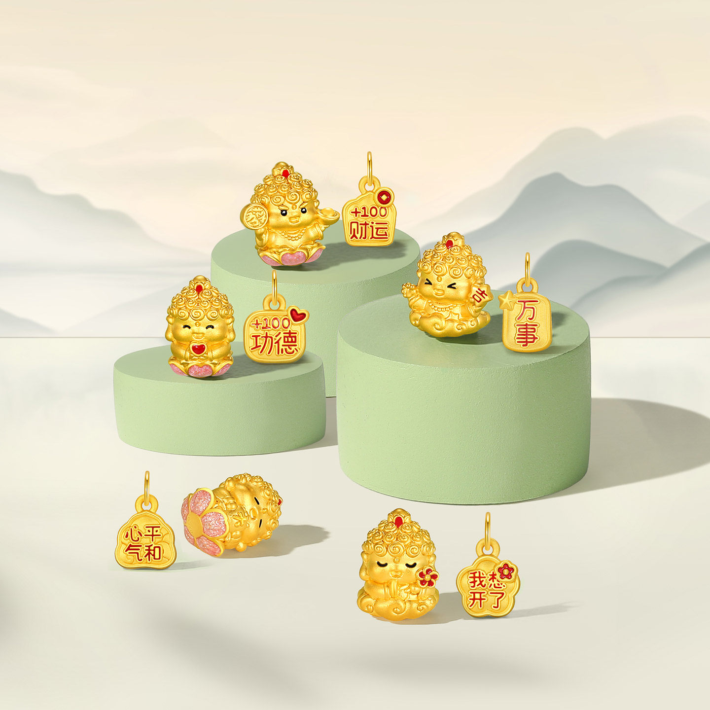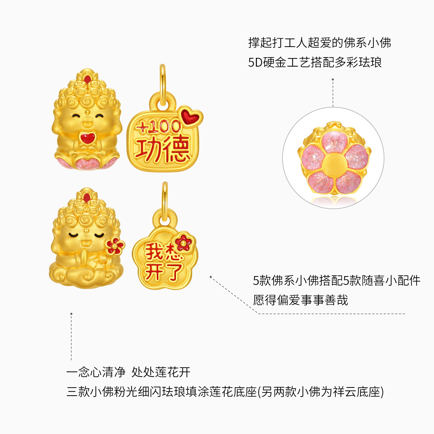 潮宏基佛系打工人黄金转运串珠足金手绳硬金好运暴富生日礼物