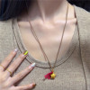 古法沙金红绳流苏折纸小星星吊坠项链女手工编织绳子可调节毛衣链