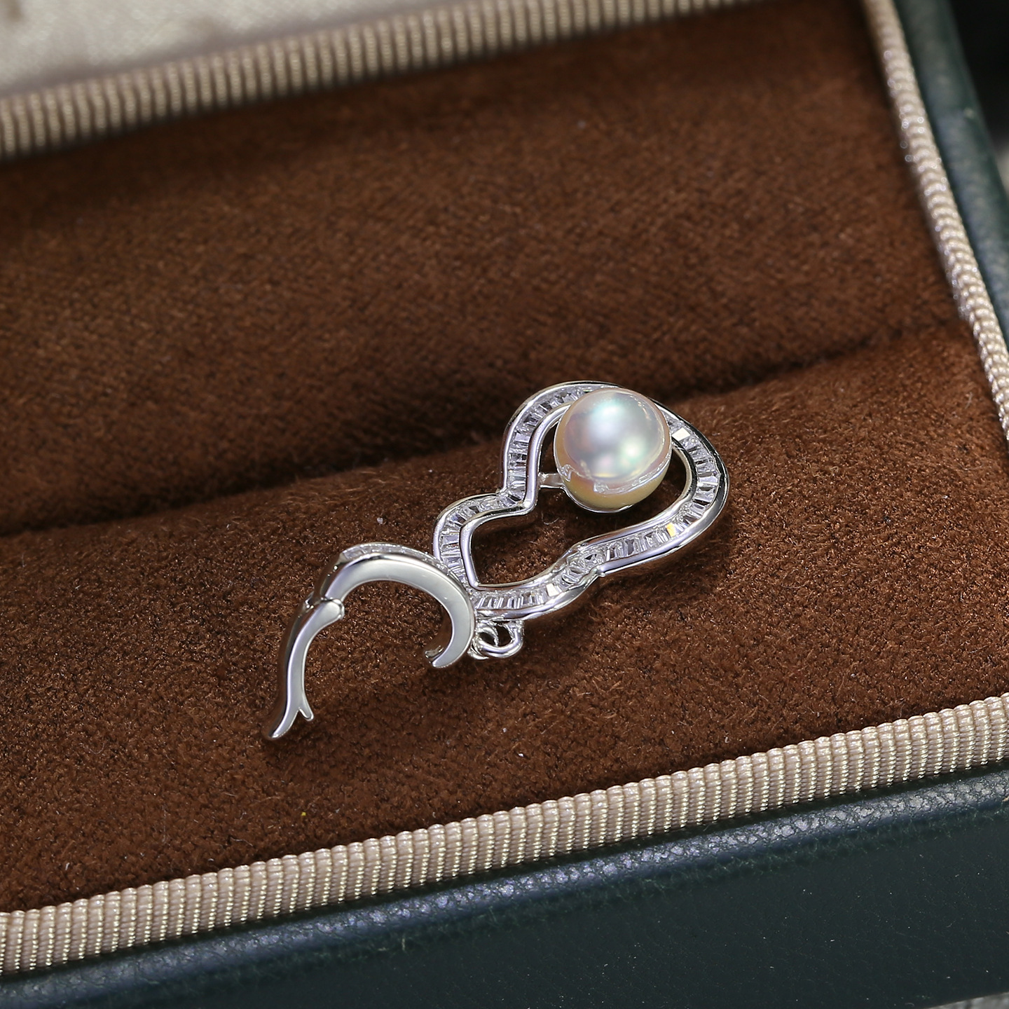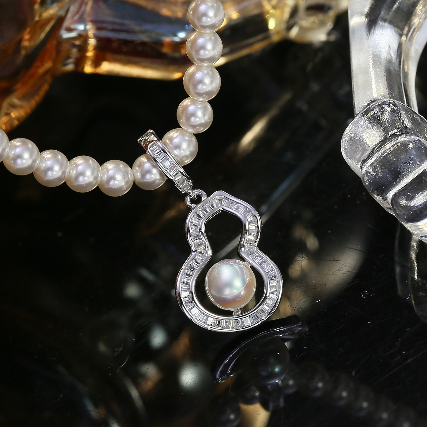 DIY配件 S925纯银葫芦珍珠吊坠扣空托T方锆石项链坠银托可打开6-8