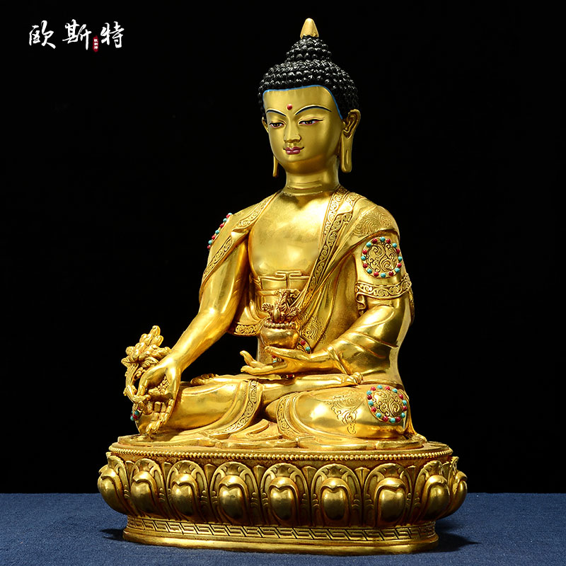 欧斯特全鎏金《药师佛》室内家用精工《药师如来》铜像摆件