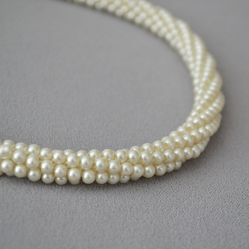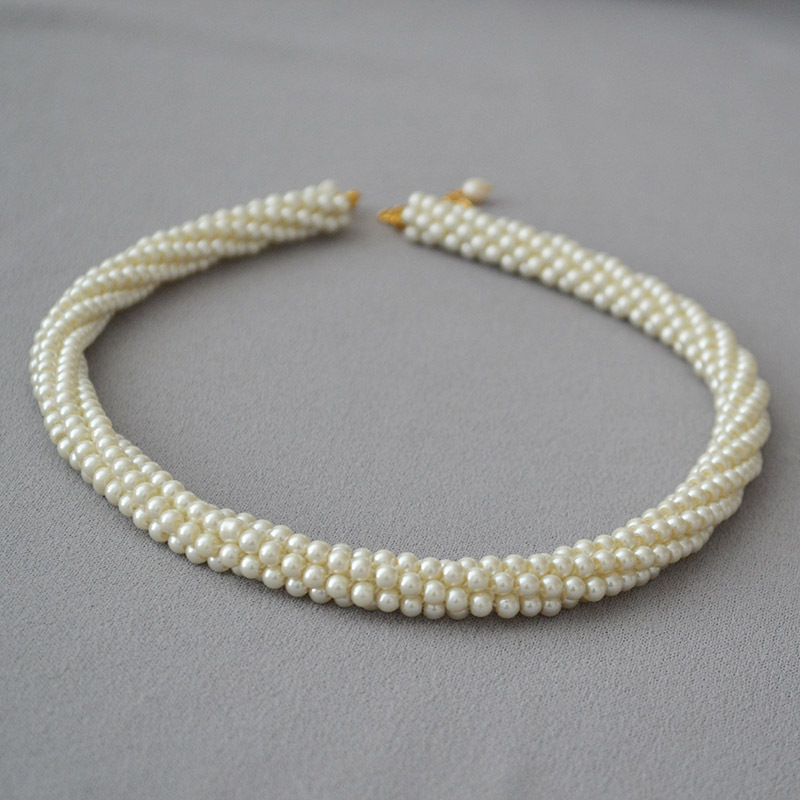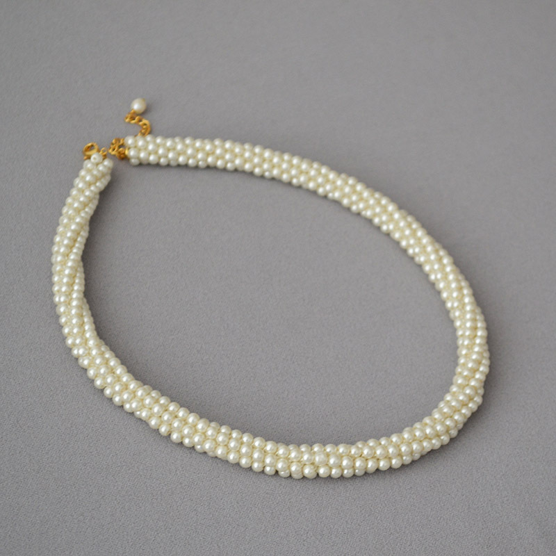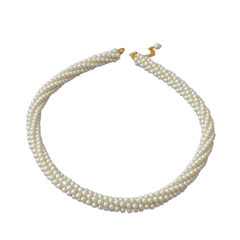 韩国小众设计复古赫本多层手工编织玻璃仿珍珠大气晚宴项链锁骨链