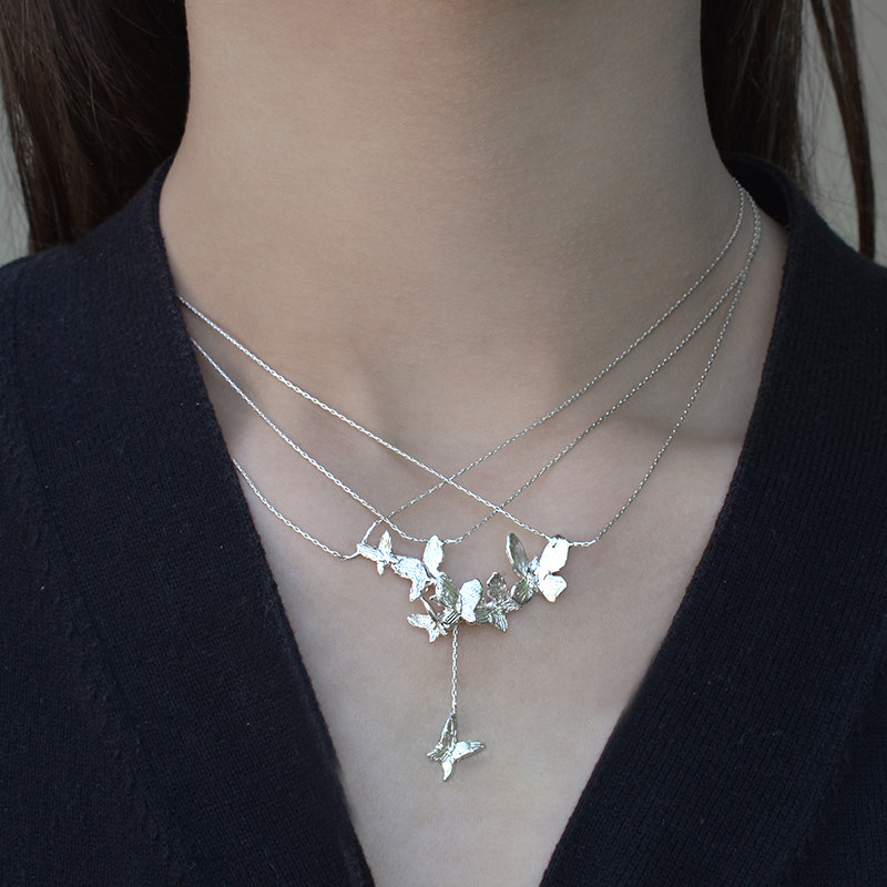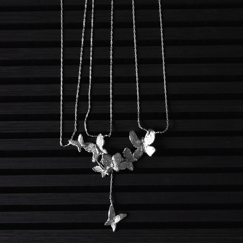 東黑三白/迷芳群蝶 s930纯银设计感立体蝴蝶拼接锁骨chocker项链