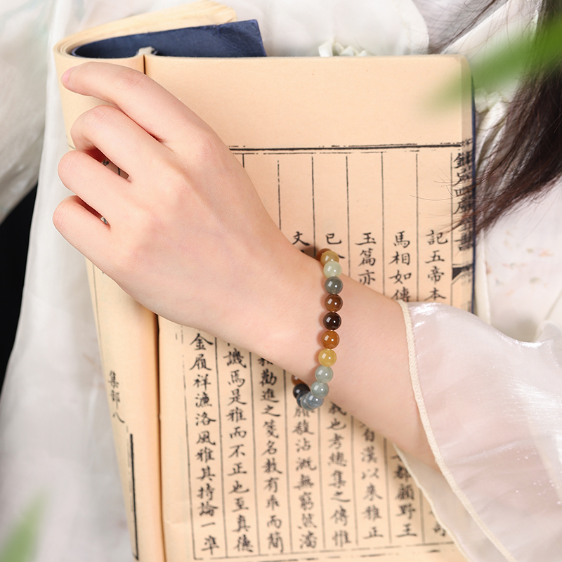 楼兰三色和田玉手串手链亲宝水晶新疆天然玉石项链佛珠饰品女素圈